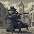 「ふぅ〜、こりゃあ、厄災じゃけんのう、どう、始末したろうか、はいほう、ワシが、奴の気を引きつけるけぇ、おまえさんは、奴の目を狙撃してくれぇ」