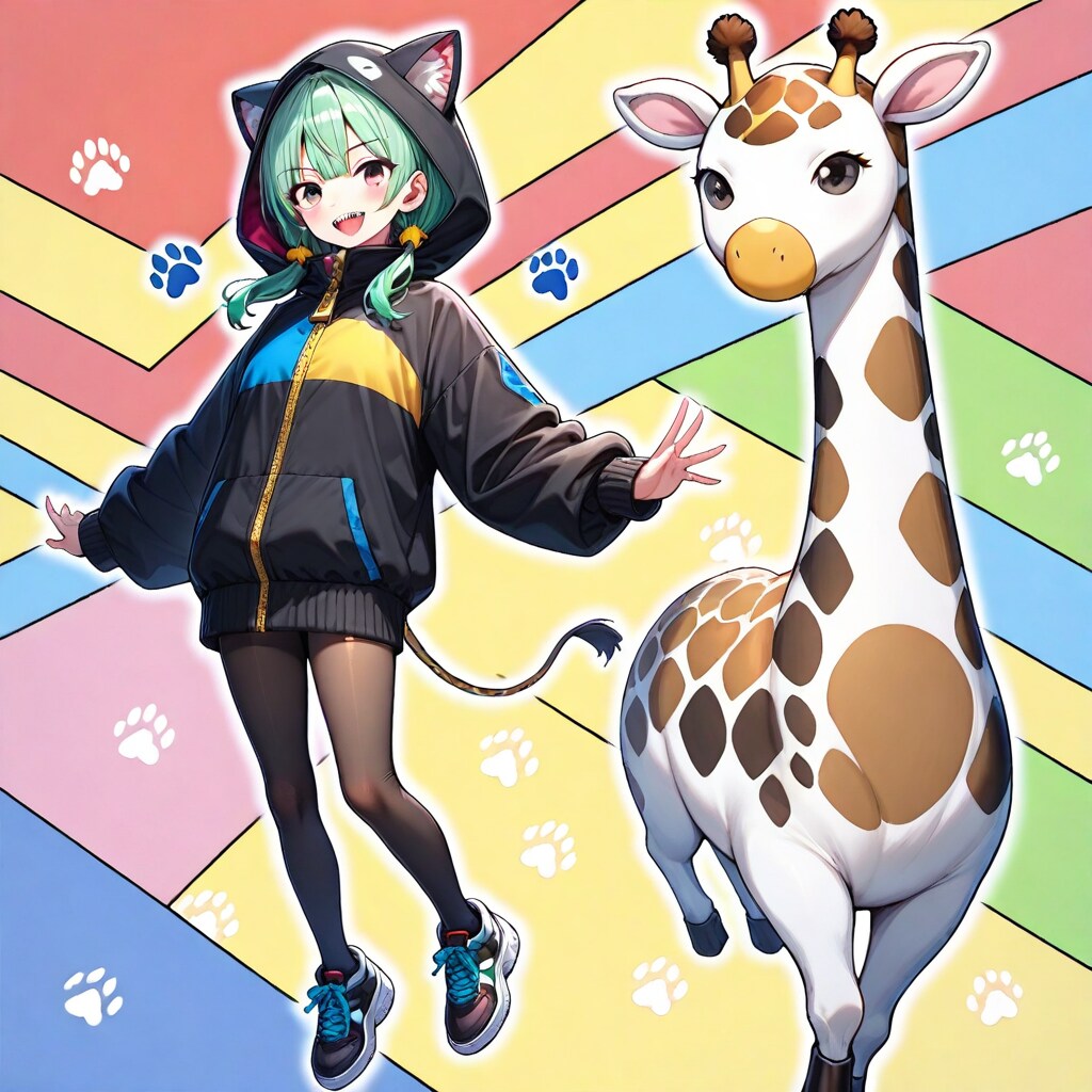 黒猫パーカーとキリン着ぐるみの融合したみたいなやつ着てる黒タイツお姉さん