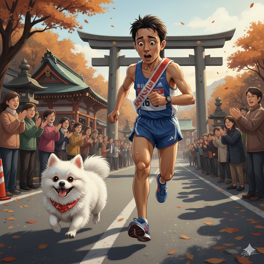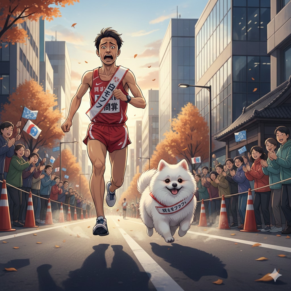 ポメラニアン「僕も駅伝選手と一緒に走るぞ♪」