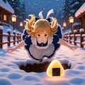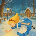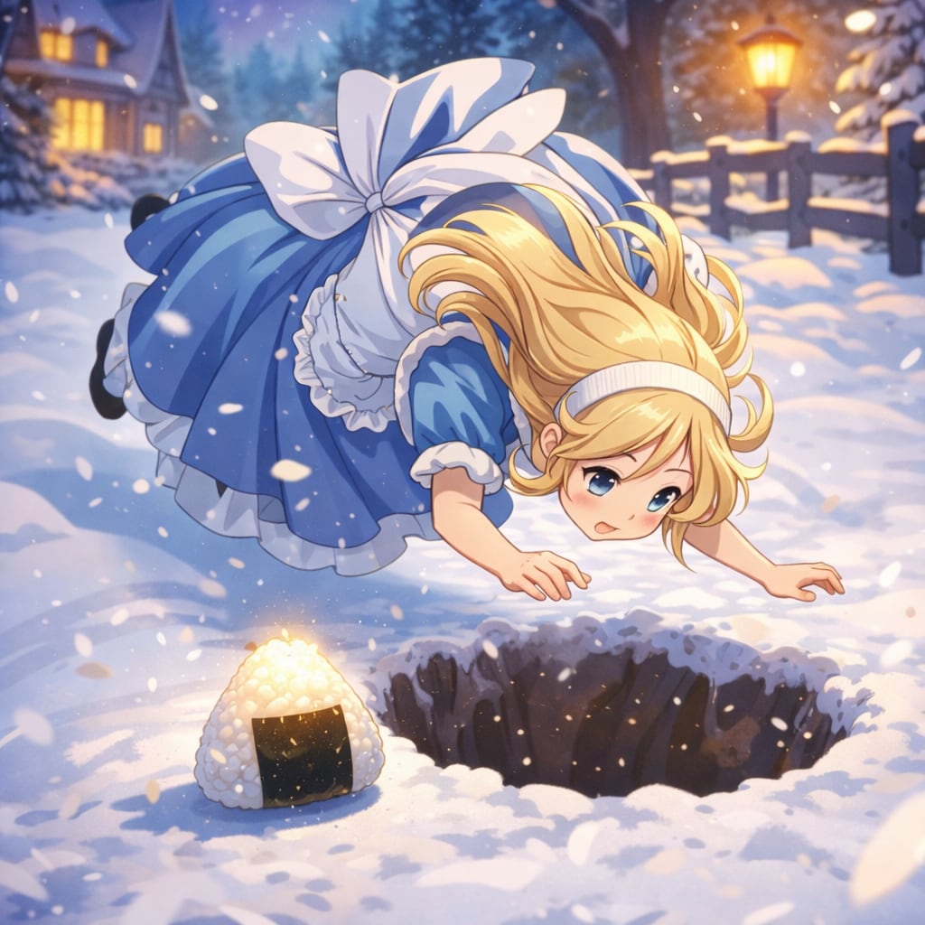 転がったおむすびをおいかけてウサギ穴に飛び込むアリス