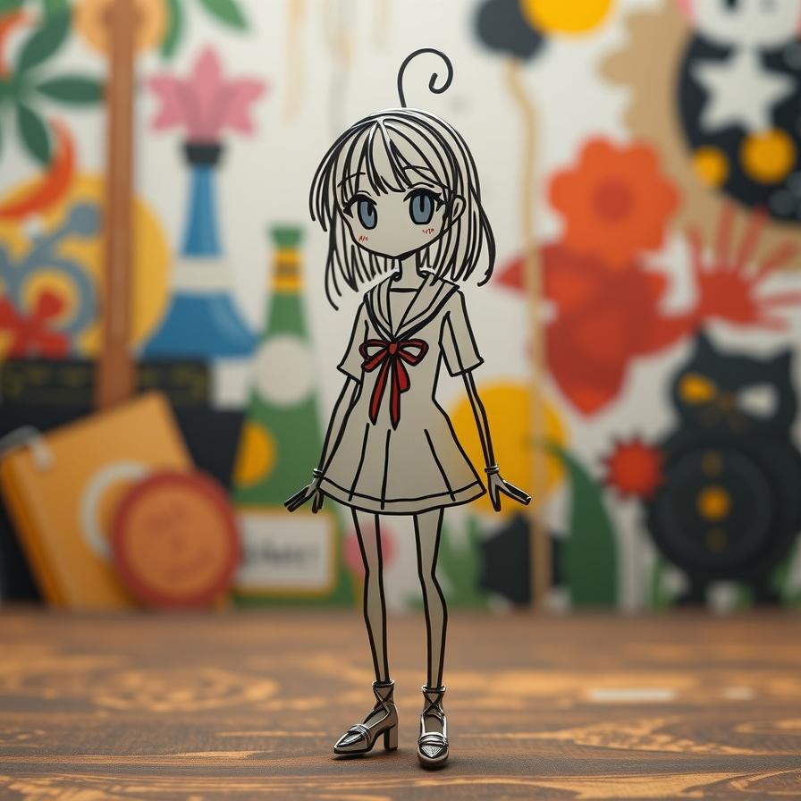 ナイトカフェで見かけた針金人形(オリジナルは生徒風、ネガティブ欄に記載)