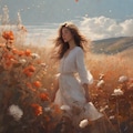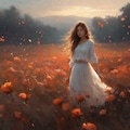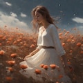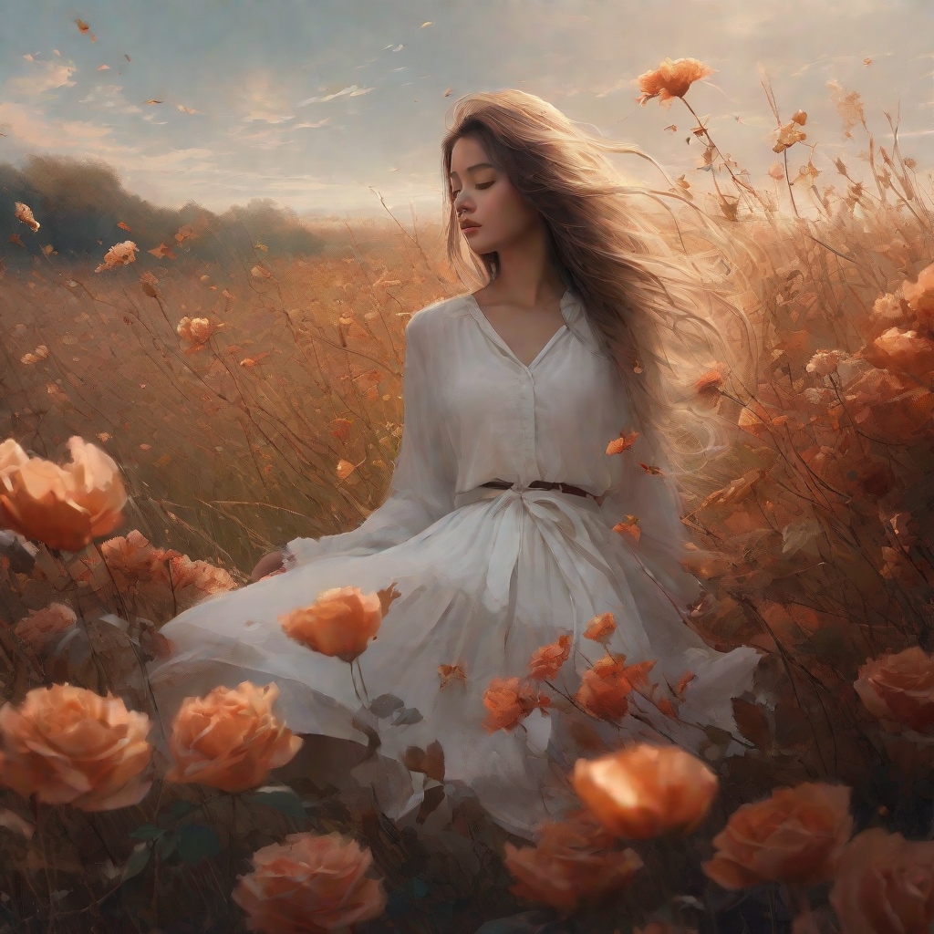 matte painting, a melancholic autumn scene in a vast flower field,