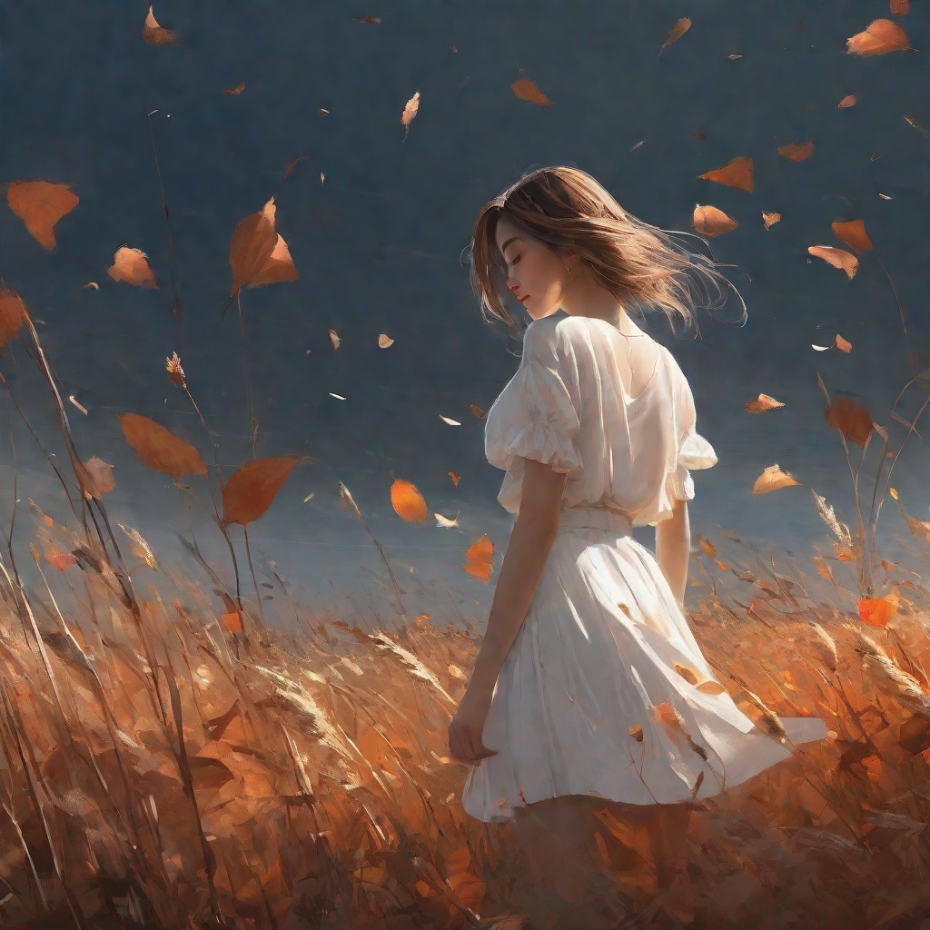 a gentle breeze rustling through the dry grass, fallen leaves scattered among the flowers,
