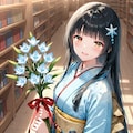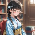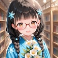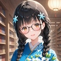 雪音さんは和風な黒髪ロングヘアということですがもちろん眼鏡三つ編みになっていただきました(苦笑)。プロンプトはおしくらカードのものから一部修正の上で使わせていただきました。ありがとうございます。
