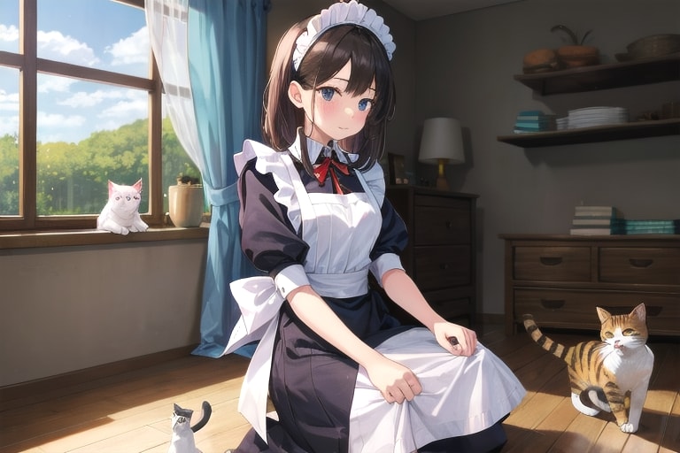 4枚目 1girl,cat,maid
