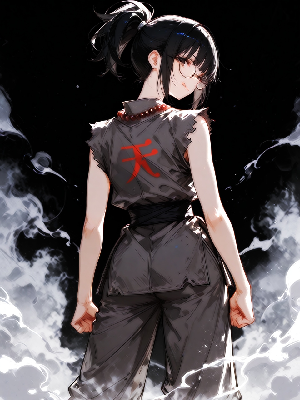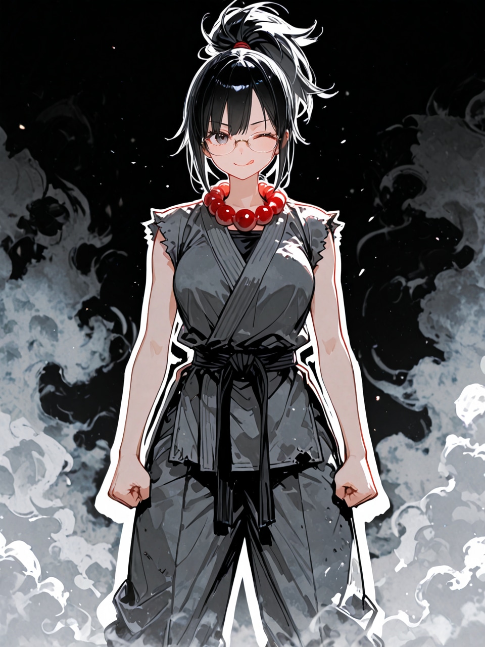 jacket partially removed, heart in eye, burnt clothes, holding fishing rod, kanji, doujin cover, pentagram, tape gag, adjusting headwear, red socks, friends, cloud print, coke-bottle glasses, oral invitation, competition school swimsuit, barbell piercing, gradient legwear, prisoner, blood on breasts, wind chime, carrying over shoulder, tape measure, flaming weapon