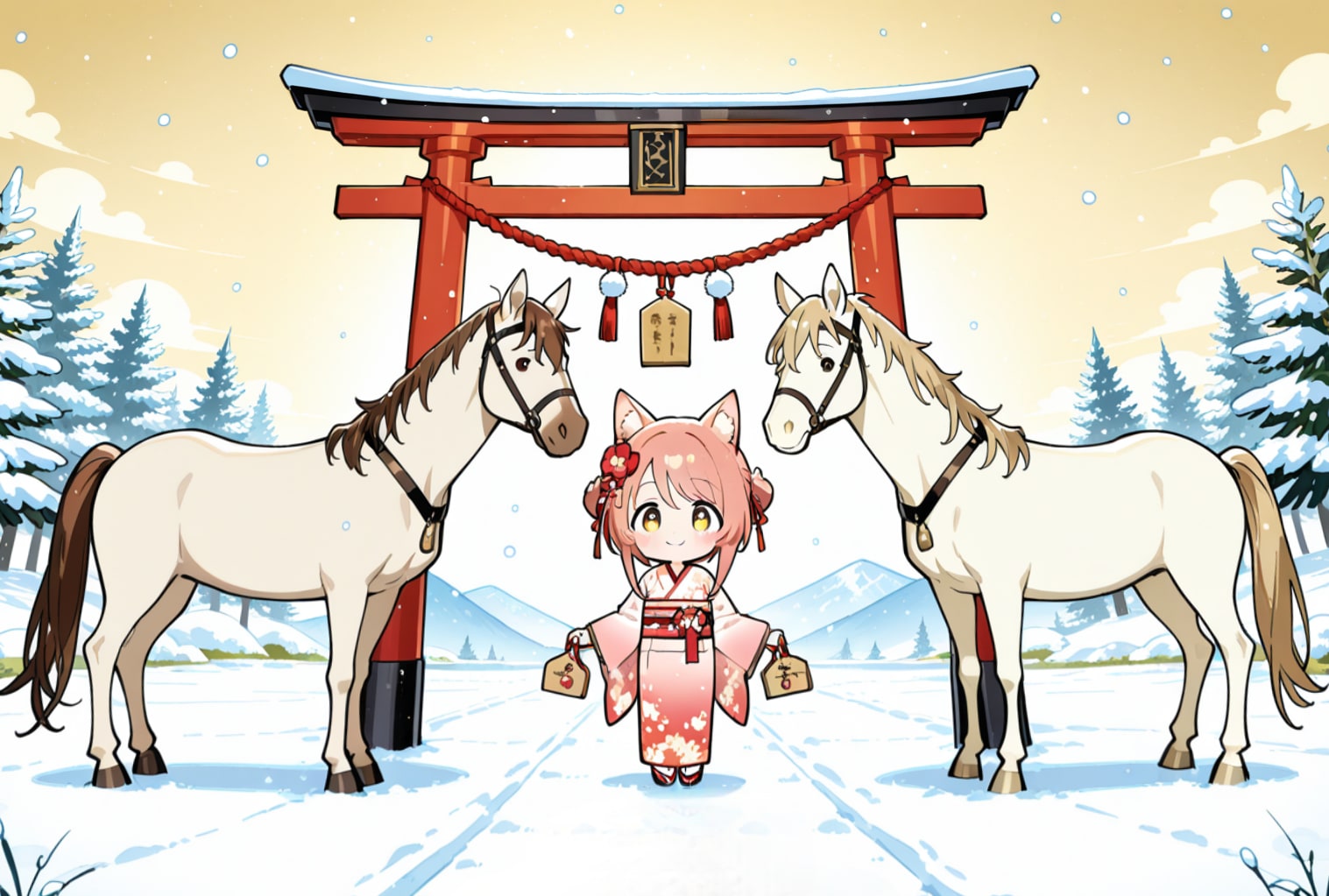 雪の神社で迎える、やさしい新年のひととき。