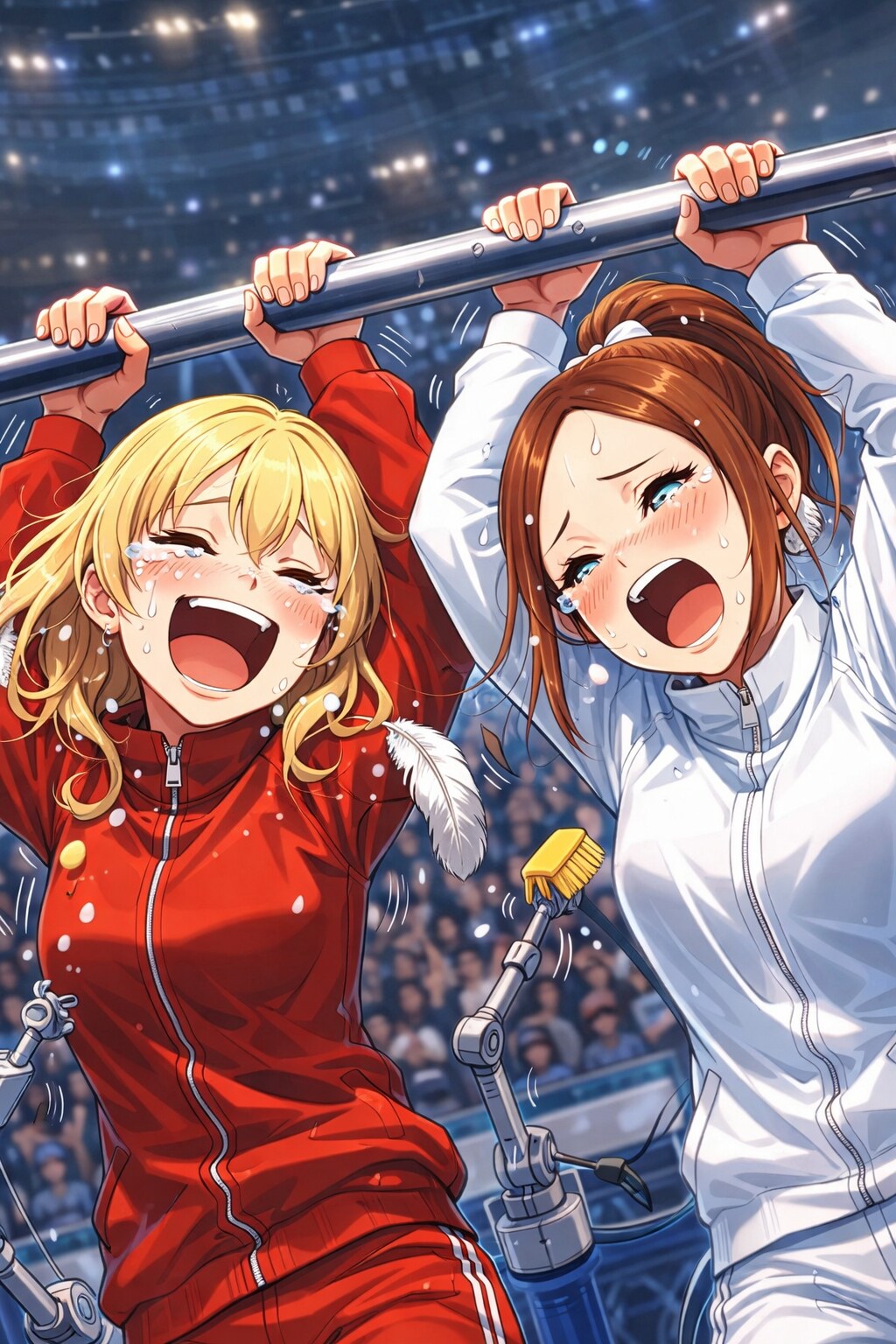 jacket partially removed, heart in eye, burnt clothes, holding fishing rod, kanji, doujin cover, pentagram, tape gag, adjusting headwear, red socks, friends, cloud print, coke-bottle glasses, oral invitation, competition school swimsuit, barbell piercing, gradient legwear, prisoner, blood on breasts, wind chime, carrying over shoulder, tape measure, flaming weapon
