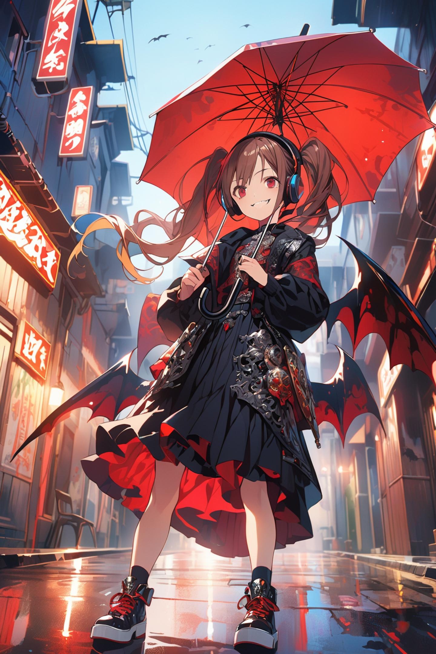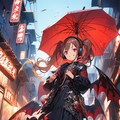 傘から放たれる赤き弾によって、