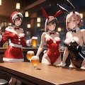 3枚目:話の流れで「そうだ、バニーさんも誘お!」ということで酒場に場所を移しての記念撮影ですが、写真撮影をしたのは家呑みで向かって右側にいた女の子でしょう。