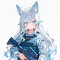 初コラボなのでSDXLで立ち絵を創りました。碧眼に銀髪のロングヘアにウルフ耳。wavy hairはSDXLだとけっこうウェービーになるので外してもいいのですが、いろいろ試した結果、強度を下げると毛先だけウェーブして本家のウルフちゃんに近くなってきたのでこれを採用です。