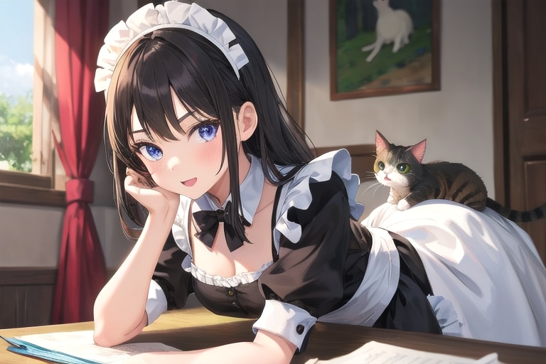 4枚目 1girl,cat,maid