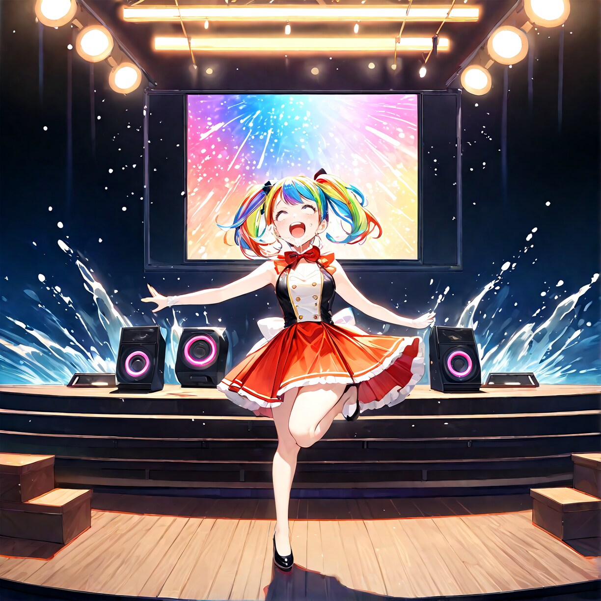 このあと、「blowing water out of mouth」を1.4で強調したり、口をすぼめる、水を吹き出す、スプラッシュなどの呪文を足すが、結局口元にじんわり水がつくだけ……、敗北!