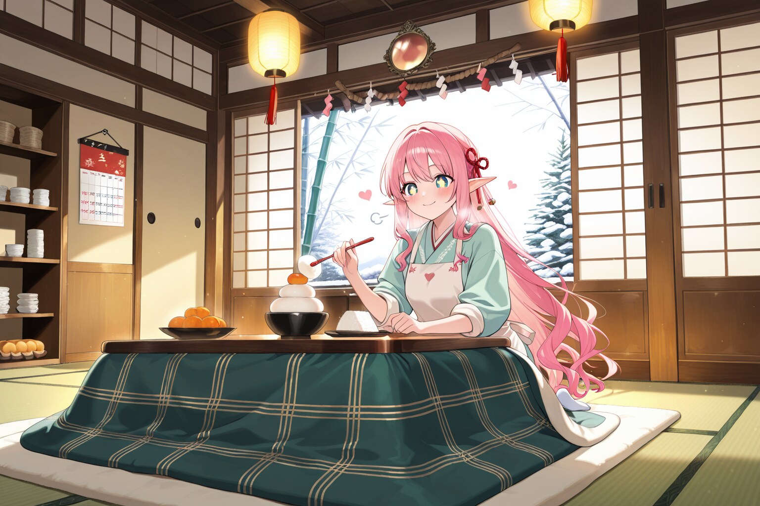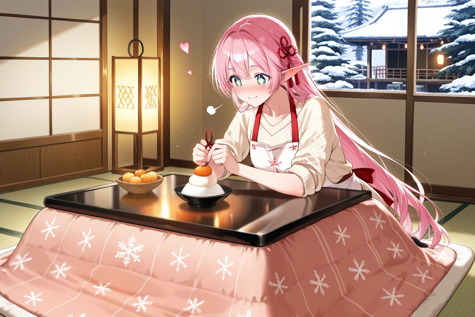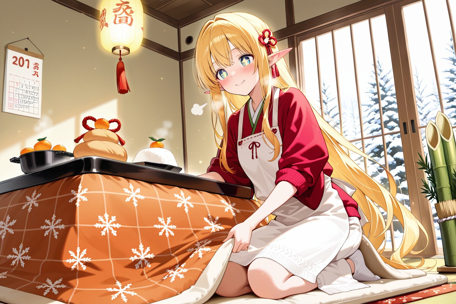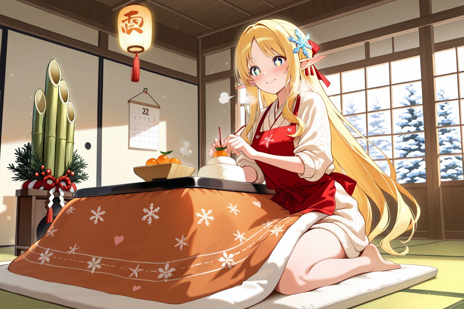正月の準備を始めるエルフの女の子
