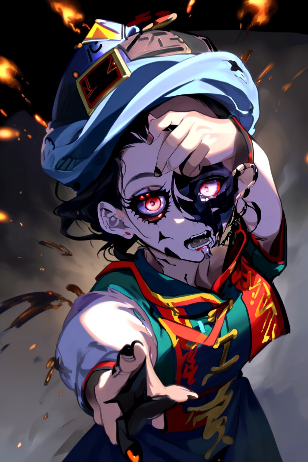 jacket partially removed, heart in eye, burnt clothes, holding fishing rod, kanji, doujin cover, pentagram, tape gag, adjusting headwear, red socks, friends, cloud print, coke-bottle glasses, oral invitation, competition school swimsuit, barbell piercing, gradient legwear, prisoner, blood on breasts, wind chime, carrying over shoulder, tape measure, flaming weapon