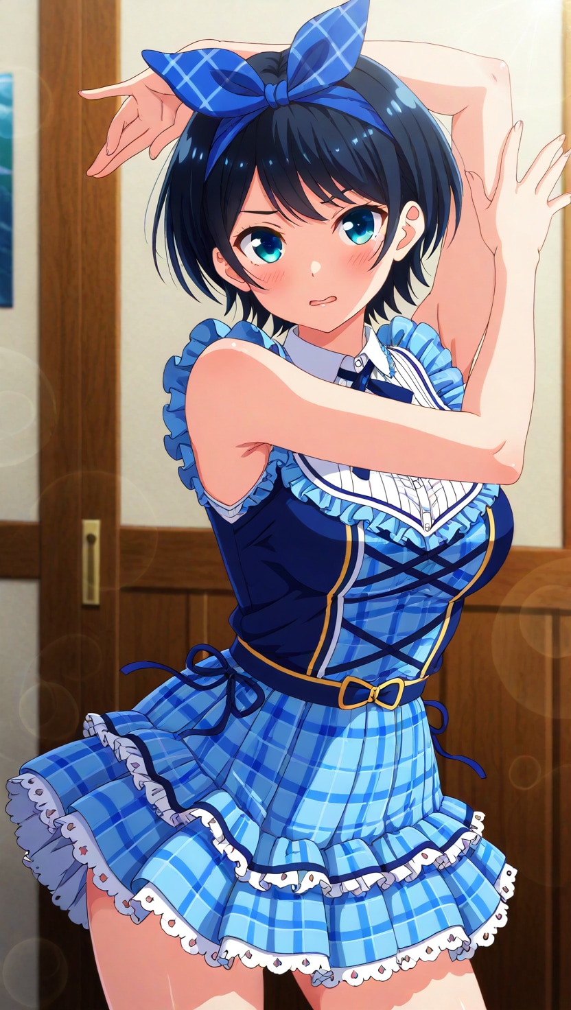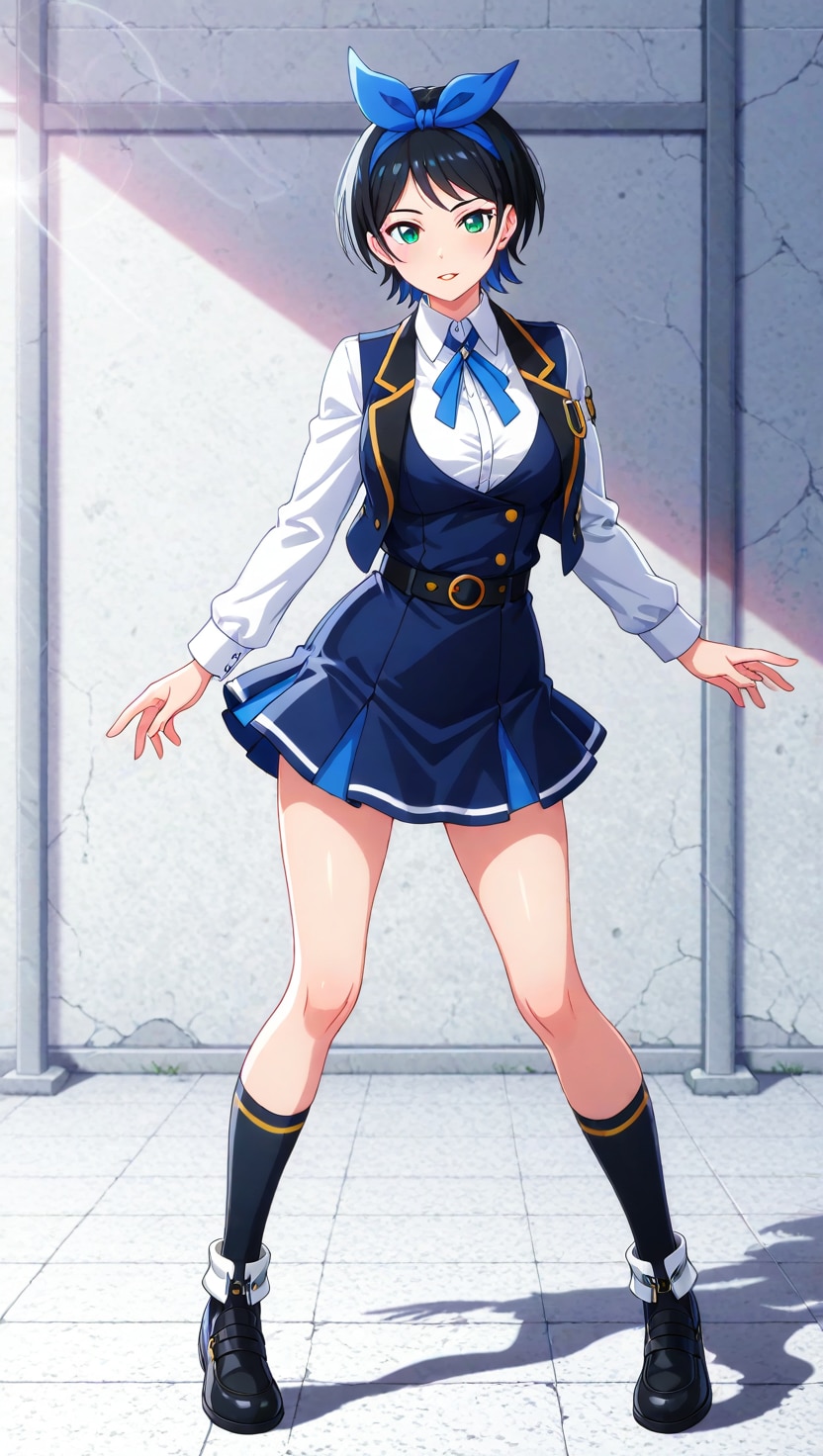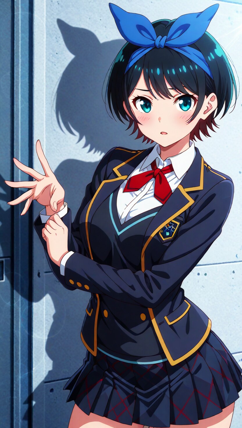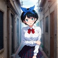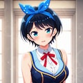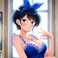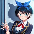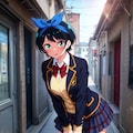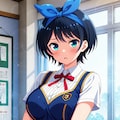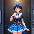 黒髪ショートに青いヘアリボン、そしてJKという属性。自分の好きな要素が全て入った感じです。