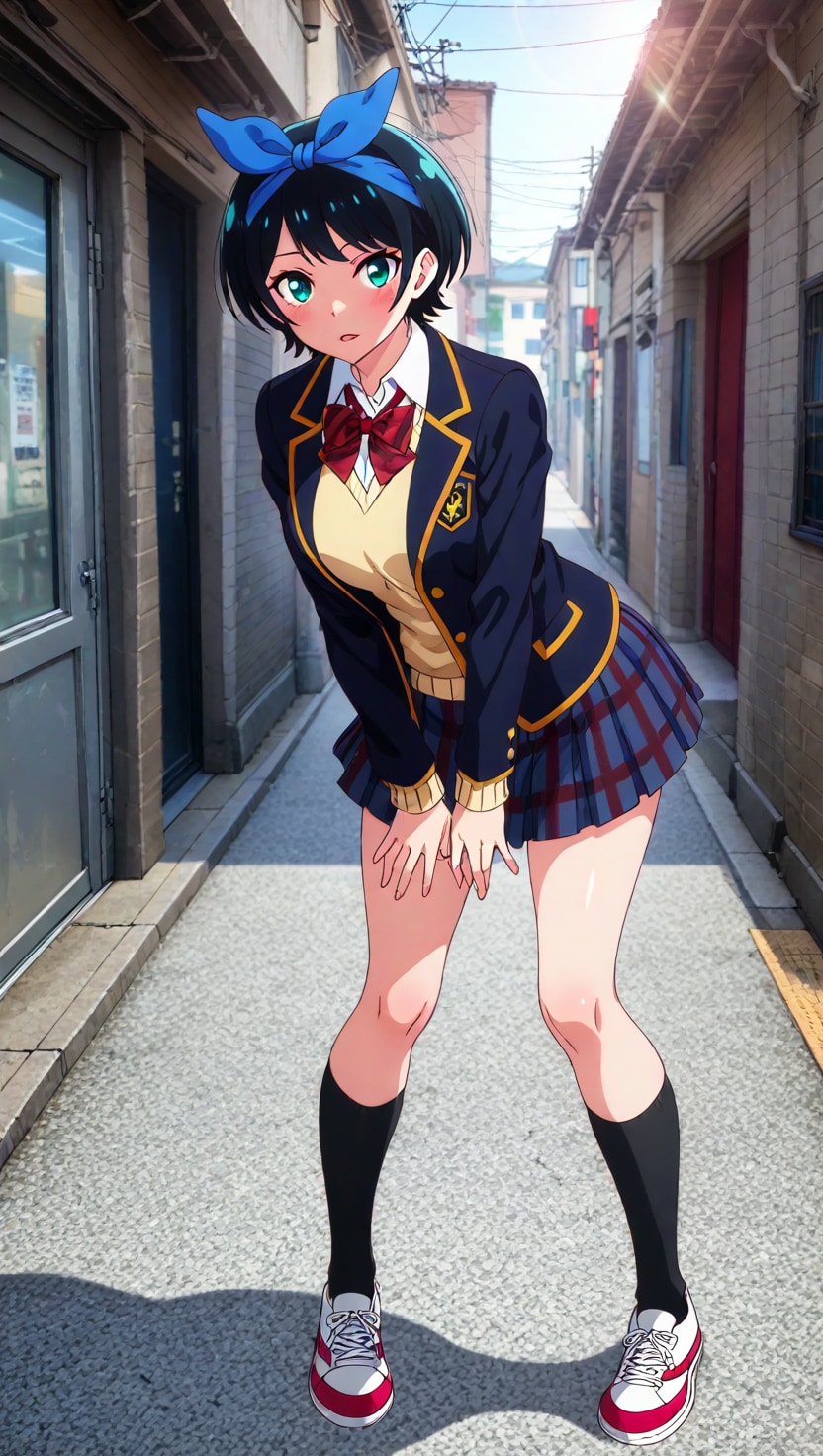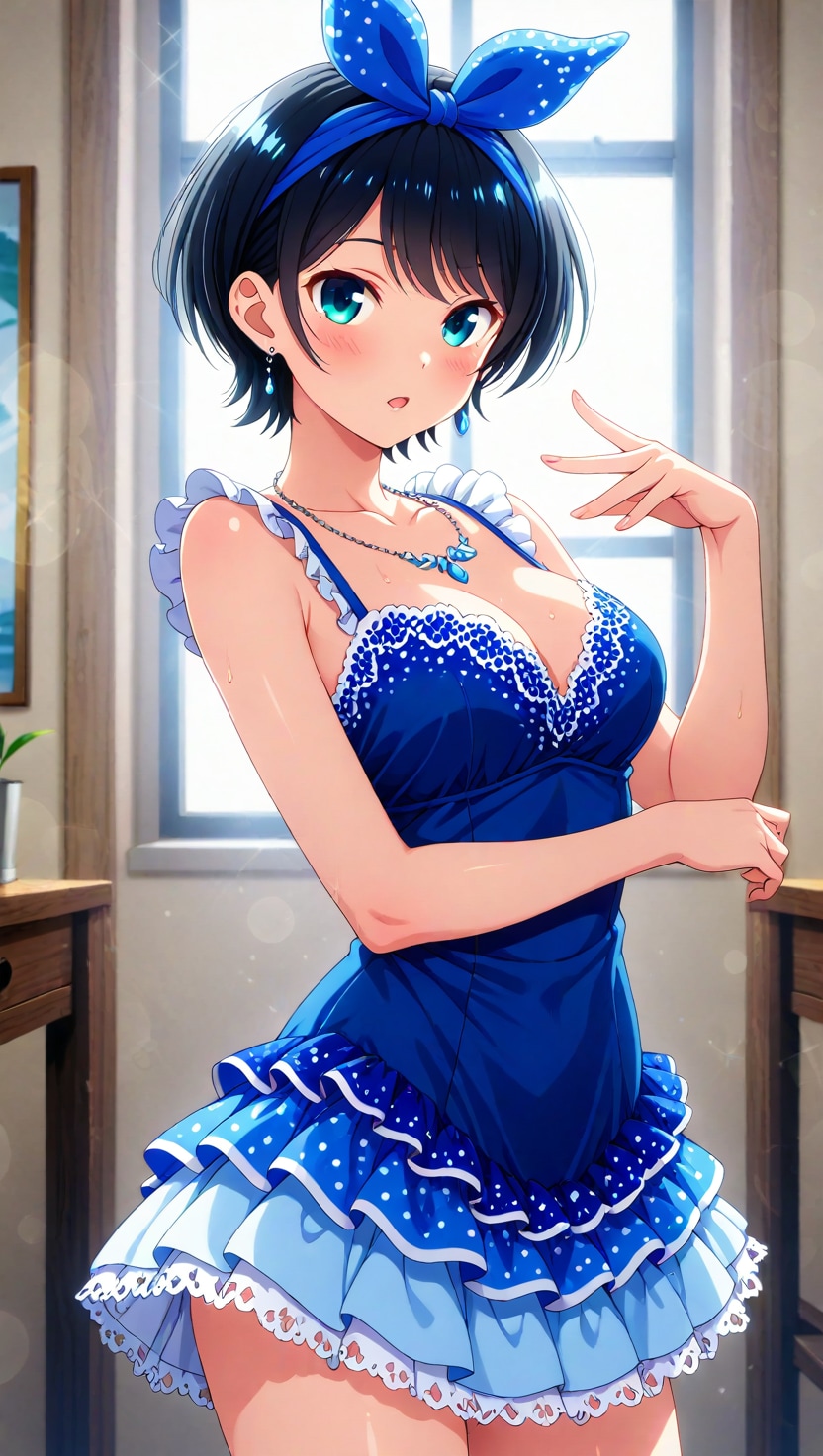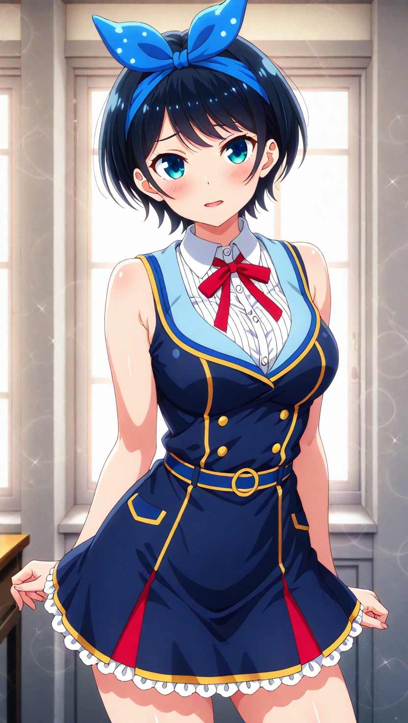 黒髪ショートに青いヘアリボン、そしてJKという属性。自分の好きな要素が全て入った感じです。