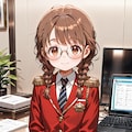 今回の委員長ちゃんはえなえなさんが大元を作ったちちぷいの名物企画「ちちぷいフレンズ学園」にて拝命している「生徒総長」としての登場です。いつものセーラー服ではなく肩章のついた赤いブレザーと茶系色のスカートが特徴で普段よりも自信と威厳があるタイプを、と意識して作っております。