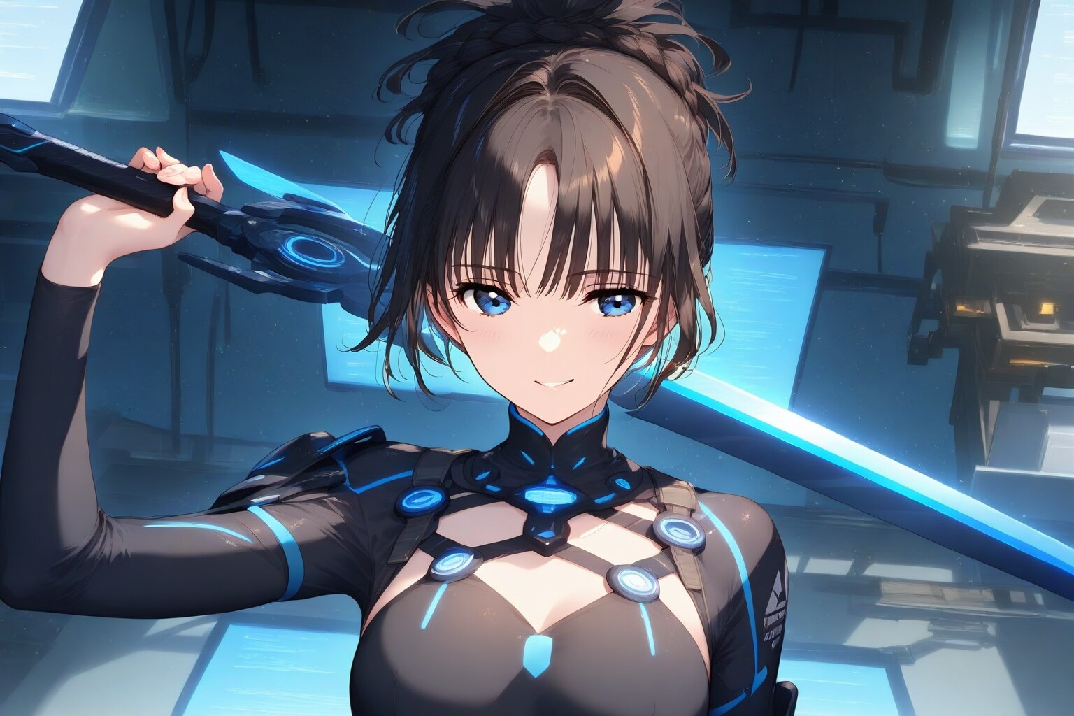 炎と汗が似合う、孤高の刀匠🔥✨ ポニテの揺れと、鍛冶場の熱気が生み出すコントラストが最強にクール。黒い衣装に映える白い肌と青い瞳が、ストイックな美しさを引き立ててる。片手で刀を持つ姿から、どれほどの集中力と情熱が注がれたかが伝わってくる…!😭 誰にも邪魔させない、自分だけの世界で「最高傑作」を生み出す彼女の職人魂、心に刺さる。こんな努力家、推せる!