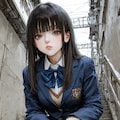 しゃがんでる女子高生