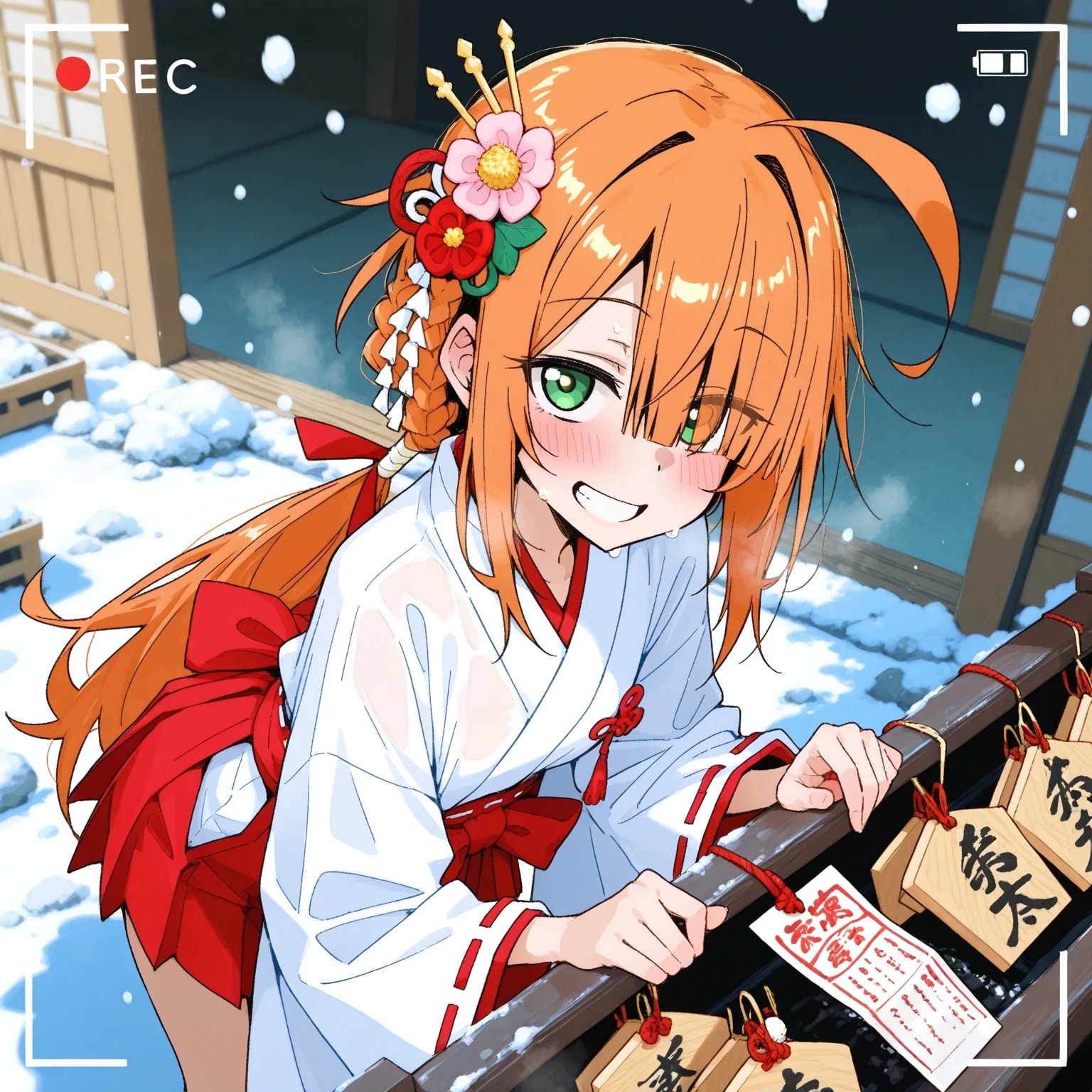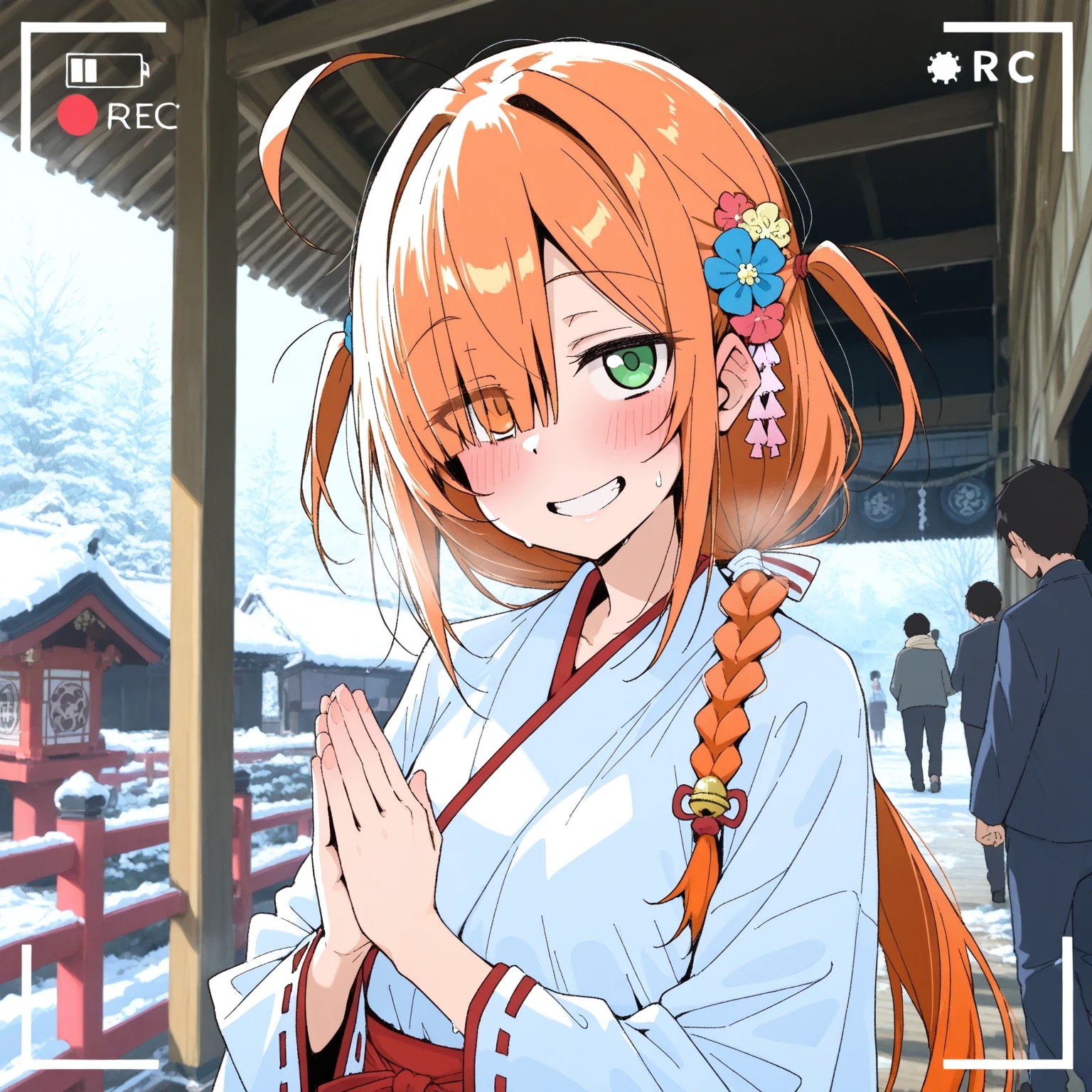 年末年始に巫女のアルバイトをする目隠れちゃん☆
