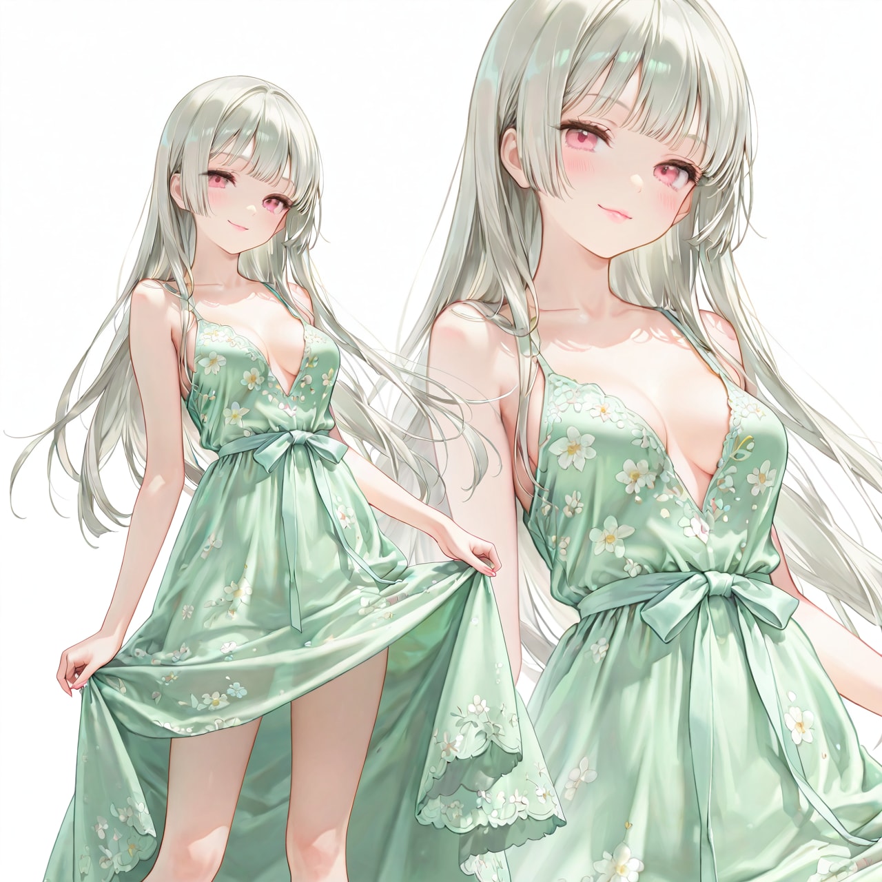 銀髪、ピンク目、控えめ?の胸は今も変わらずですが、目の大きさはもっと大きかったです(これに関しては神楽のプロンプトが未熟だった説もあり)。