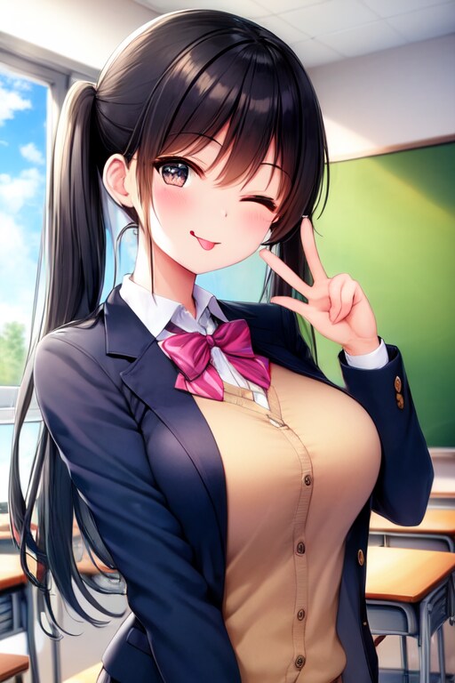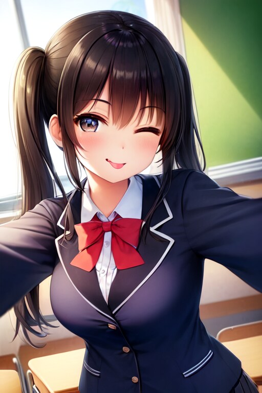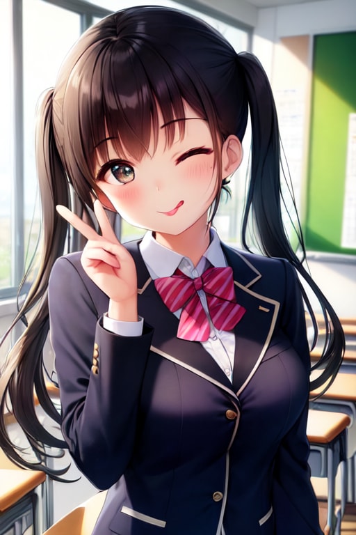 黒髪のツインテール女子高生を生成しました!(*'▽')
