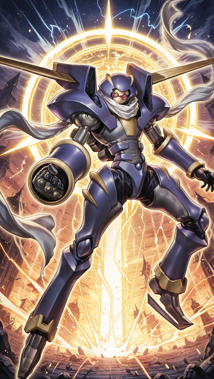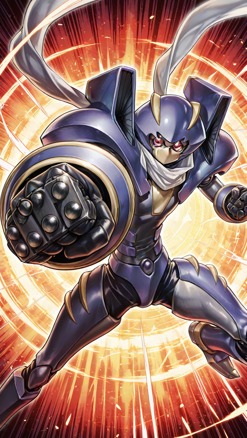 「遊戯王5D's」より主人公「不動遊星」とシンクロモンスター「ジャンク・ウォリアー」のイラストです。