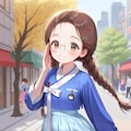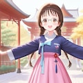 委員長ちゃん「チマチョゴリを着る機会がありましたので着てみましたが、可愛らしくて結構お気に入りになりそうです。普段なかなか着られないものでもあるのでちょっと髪型も変えてみました(^^ゞ 韓国はさすがに行ったことはないのですがが韓国の世界遺産でもある古宮・昌徳宮と首都のソウル市最大の繁華街・明洞をイメージした風景を合わせていただきました。昌徳宮は韓流の時代劇の撮影にも使われたりしてどんな感じかは知ってますが、ならばこそ1回は行ってみたいですね。あと景福宮なども」