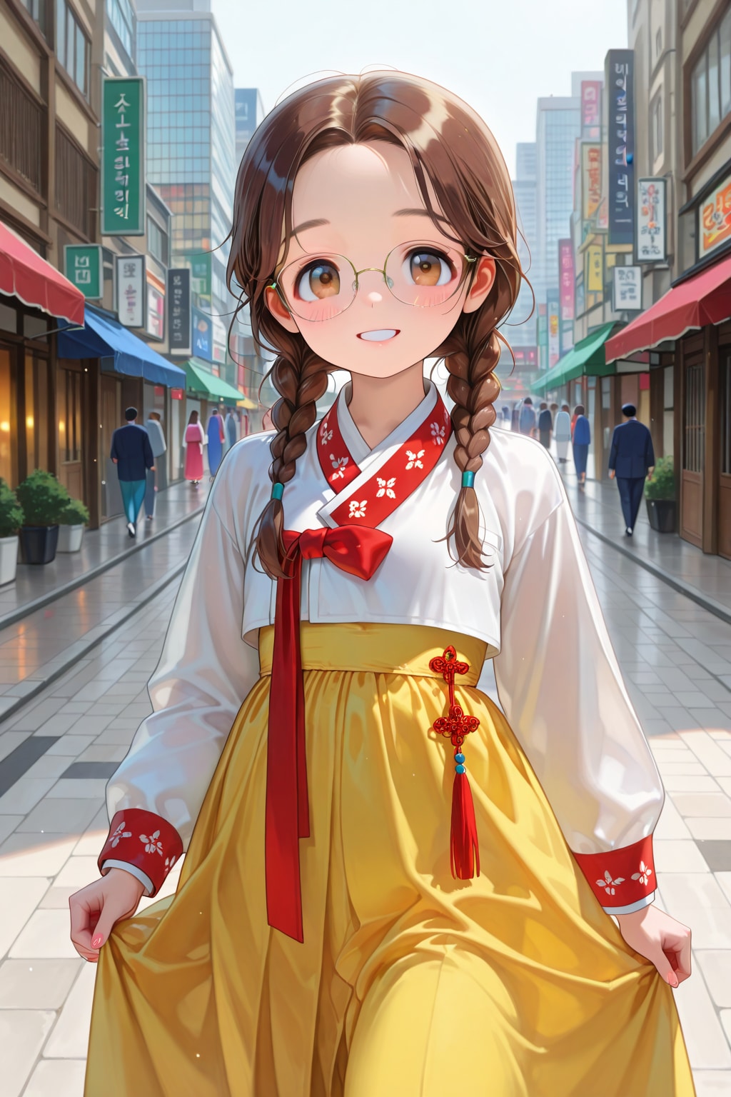 シチュエーションはどうしようかと考えてましたが特に思いつかず、韓国の名所でもある昌徳宮やソウルの繁華街・明洞をイメージした背景で作ってみました。委員長ちゃんは昌徳宮とか景福宮とか面白がって行きたがりそうですし。
