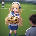 試合中のボールで"おっぱい"というものボケをする少女