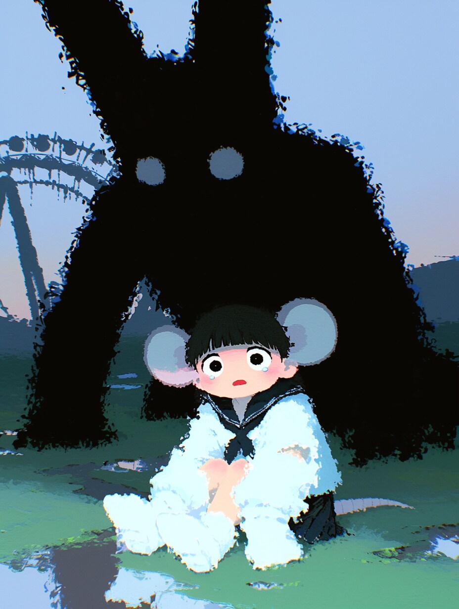絶望でやっと好きなねず耳を。パニックホラーのワンシーンのイメージ。