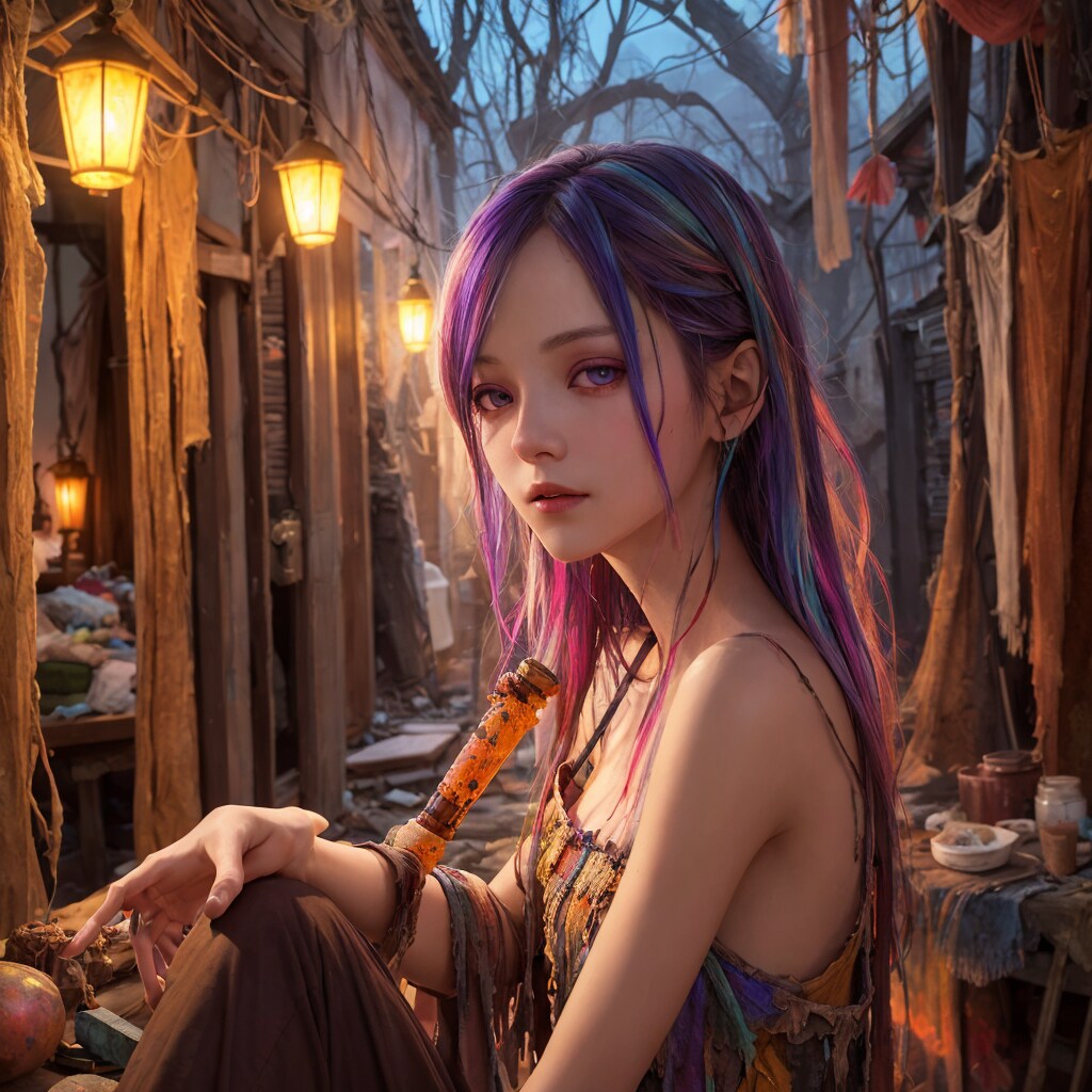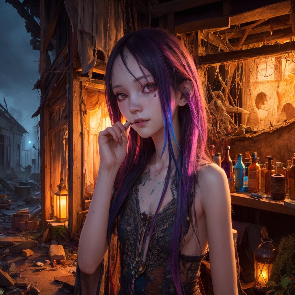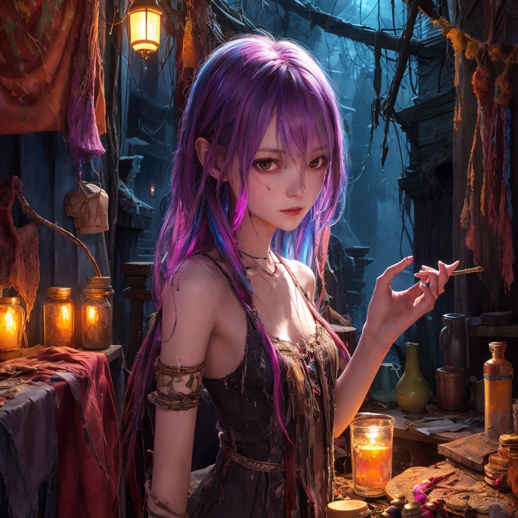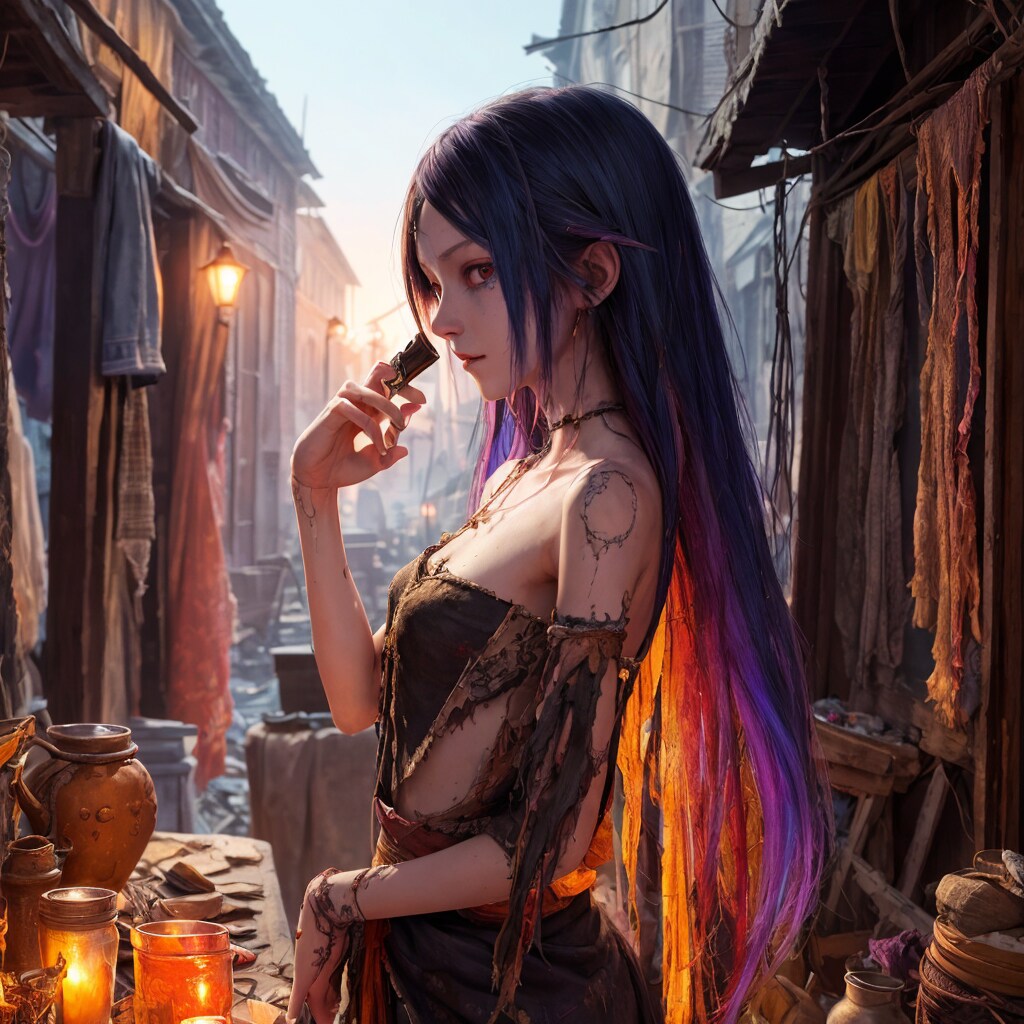 異界の脅威が日常化したこの場所に店を構える彼女は、魔力汚染の影響でカラフルな髪色を持っているが