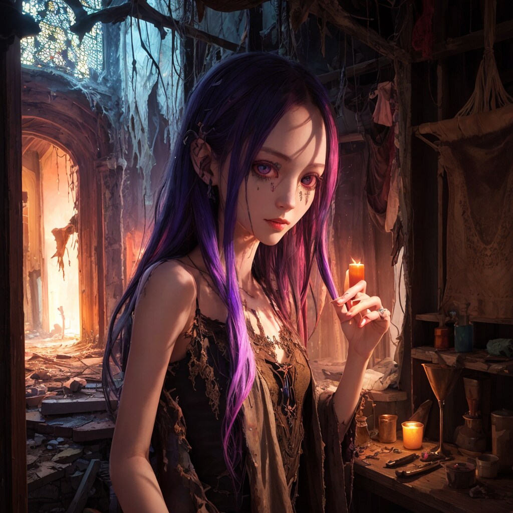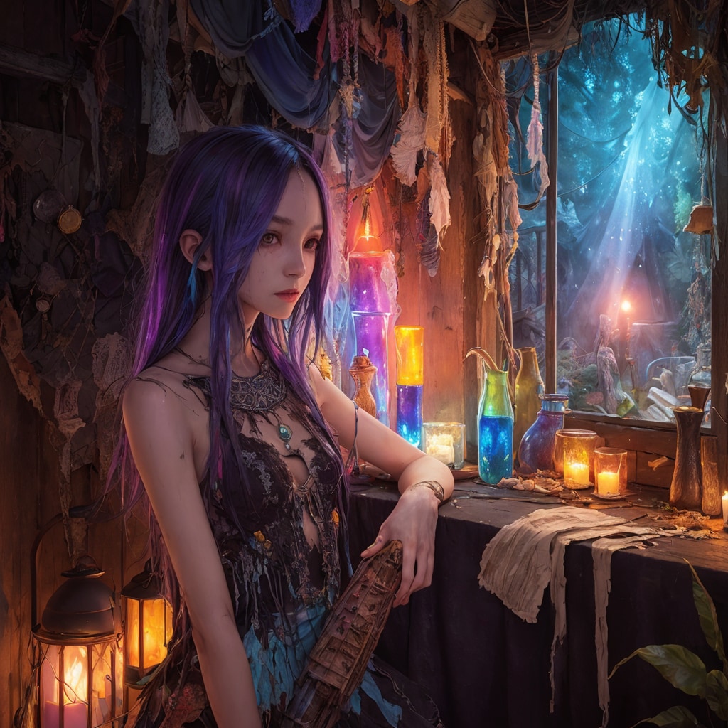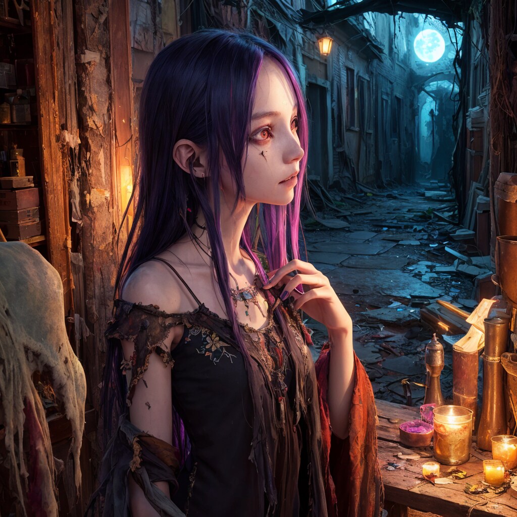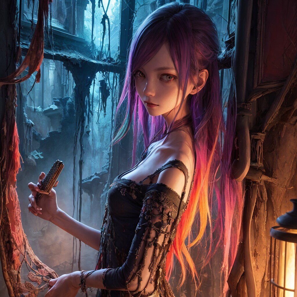 異界の脅威が日常化したこの場所に店を構える彼女は、魔力汚染の影響でカラフルな髪色を持っているが