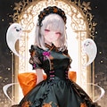 和と洋をミックスさせて大きなリボンで可愛さを増やしたハロウィン用の衣装です