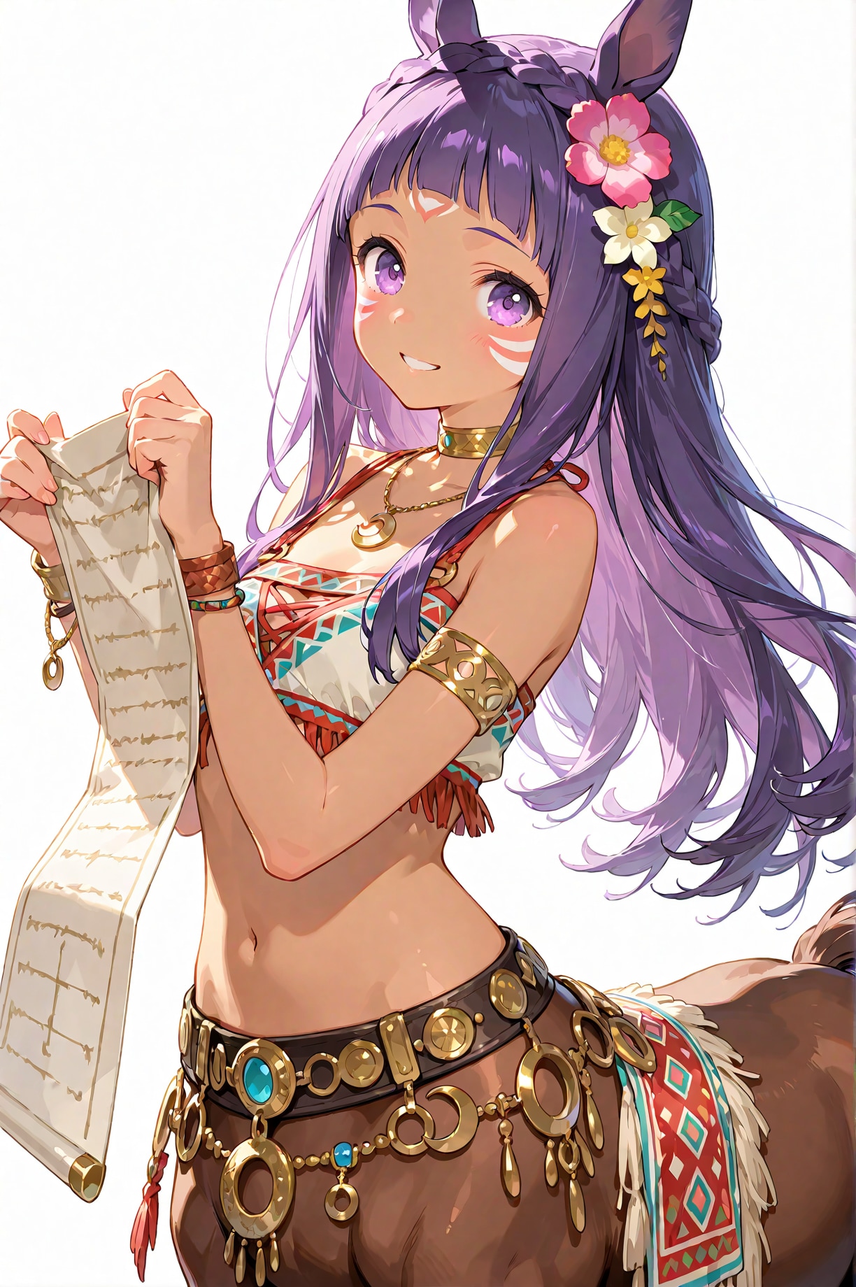 最近は眼鏡+三つ編みにチャレンジしたりしていましたが今回はデフォルトに戻って、巻物を持っています。