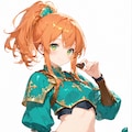 呪文が公開されている作品は割と少な目ですが、オレンジのポニテに緑(設定では正確には黄緑)の目が分かりやすいので、再現はしやすかったですね。long ponytail にすると結んだ髪が長く伸びてしまうので採用したこちらは ponytail に。sidelocks もつけてサイドの髪を増やし髪飾りも付けました。