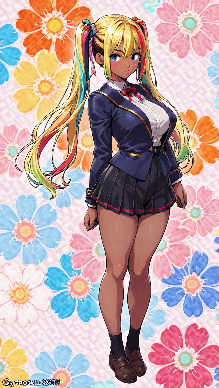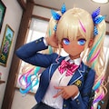 褐色肌&ツインテール&ブレザー制服というギャルJK定番の衣装です。