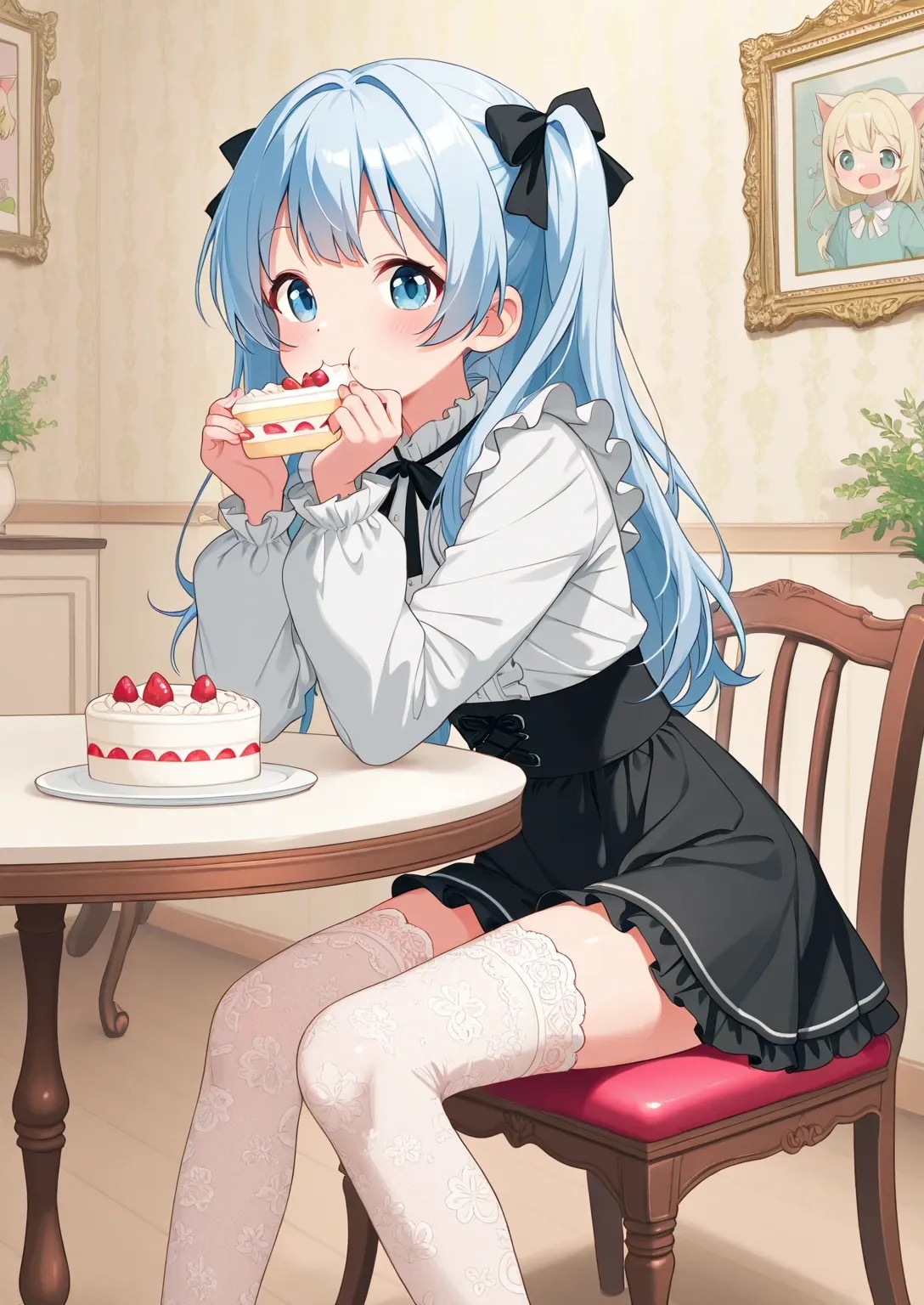 最終的にケーキを食べている可愛いロリちゃんを作りました。