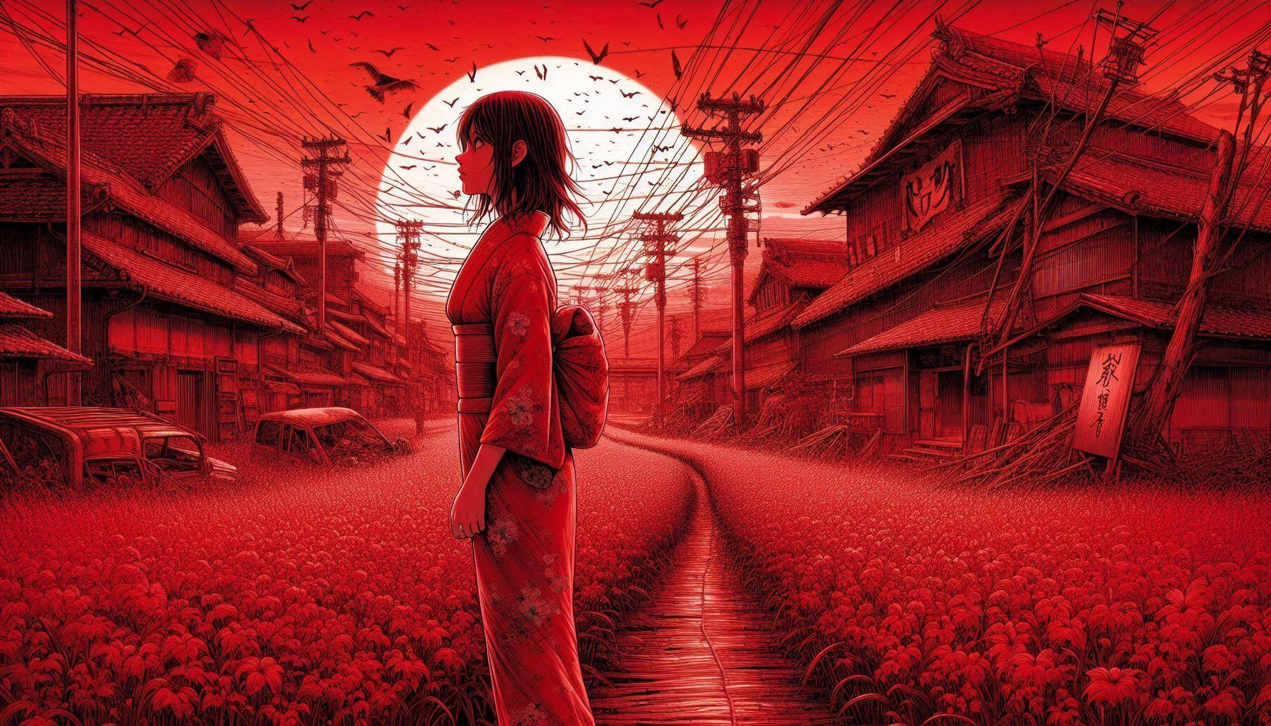 赤き異界と化し!和風ホラーゲーム風の世界観になった、私的解釈の「きさらぎ駅とその周辺」です。