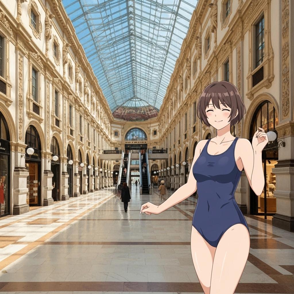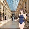 あと、2枚目はスク水モール企画用に作ったものの、スク水ではないモール客が結構描写されてボツにした実写融合イラストなんですが?(スク水以外の登場人物厳禁だった)・・チャレンジした中で写真のショッピングモールとイラストのスク水お姉さんの融合に成功?した数少ないイラストだったので、今回、掲載させて頂きました。
