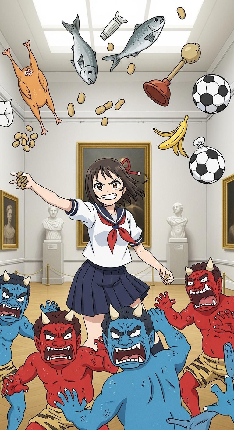 豆の代わりに投げるものはチキンとトイレのすっぽんが多いようです