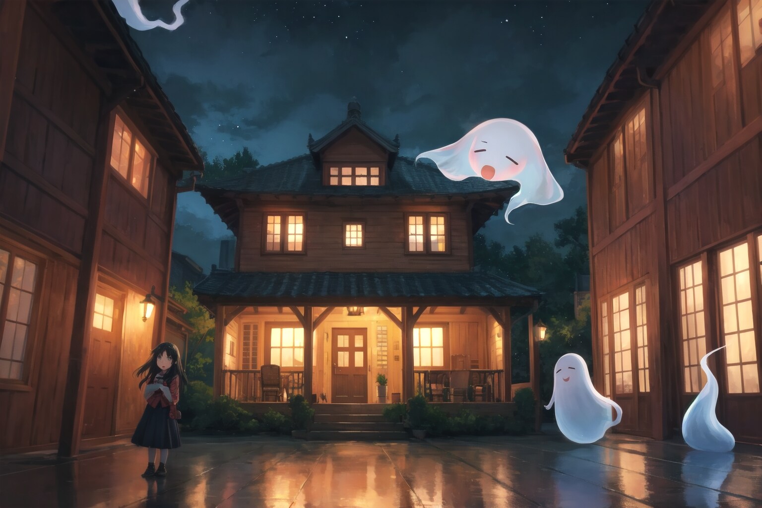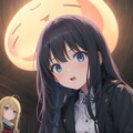 1枚目:そこそこ良いのが出来たので、これで完成(ここで以前より「(two girls:1.2), (very cute girls:1.2), (black long hair:1.2),」にプロンプトをより強調した)