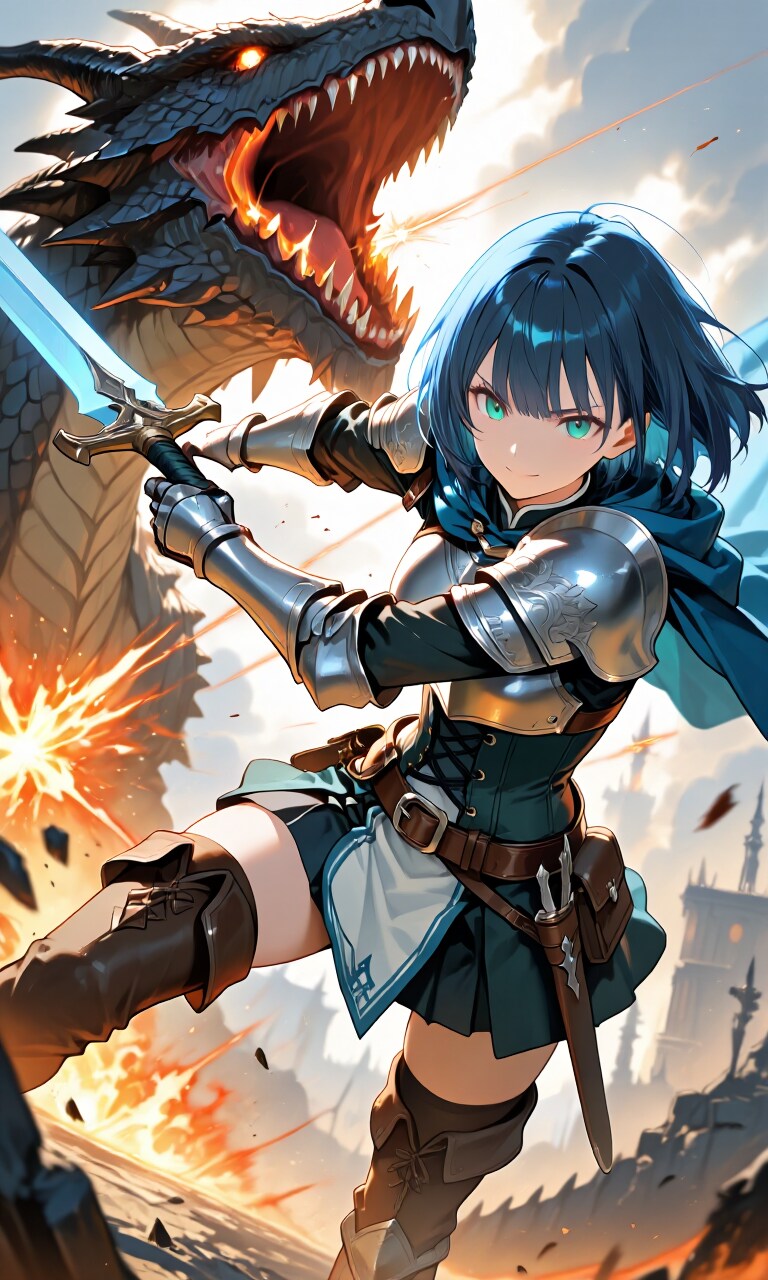 彼女はドラゴンの首元に斬りかかり、鱗を削る。