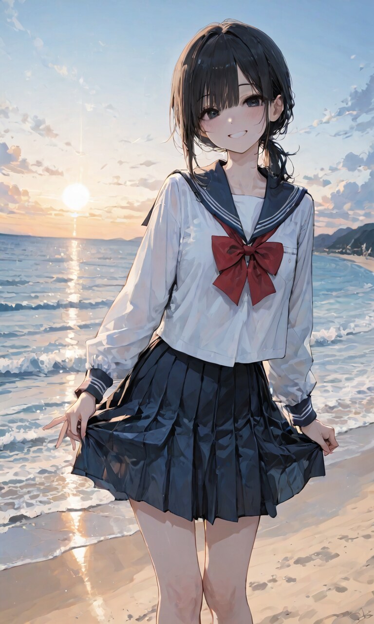 ビーチのセーラー服