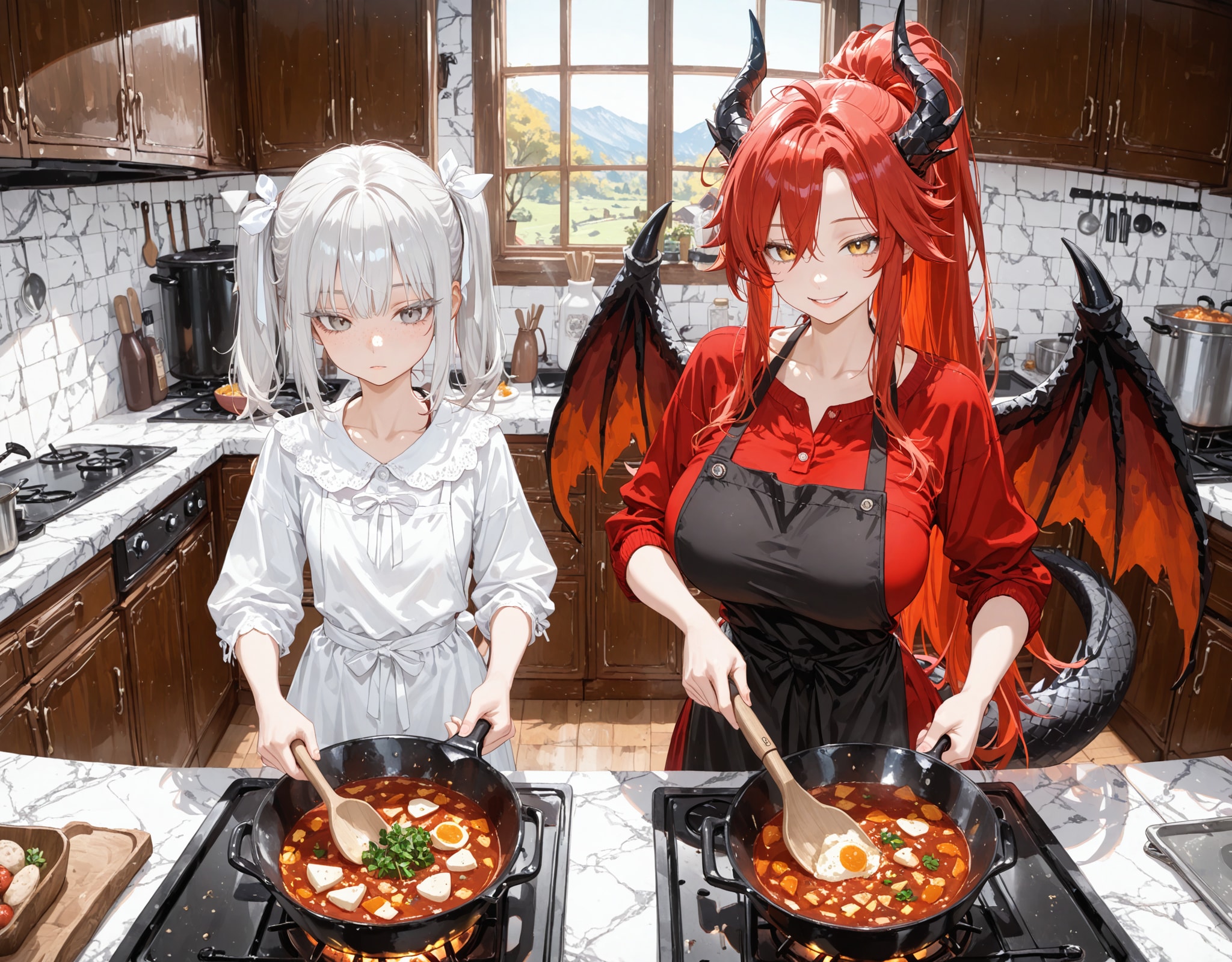 手作りのシチューをレイに振舞うために、オーレタリアに料理を教えてもらうエレーナ。