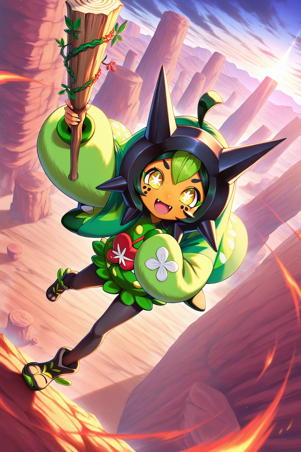 本当は4枚のようなツタを巻いた棍棒を持たせたかったのですが、良い感じに出力されなかったので普通に棍棒を持ってもらいました