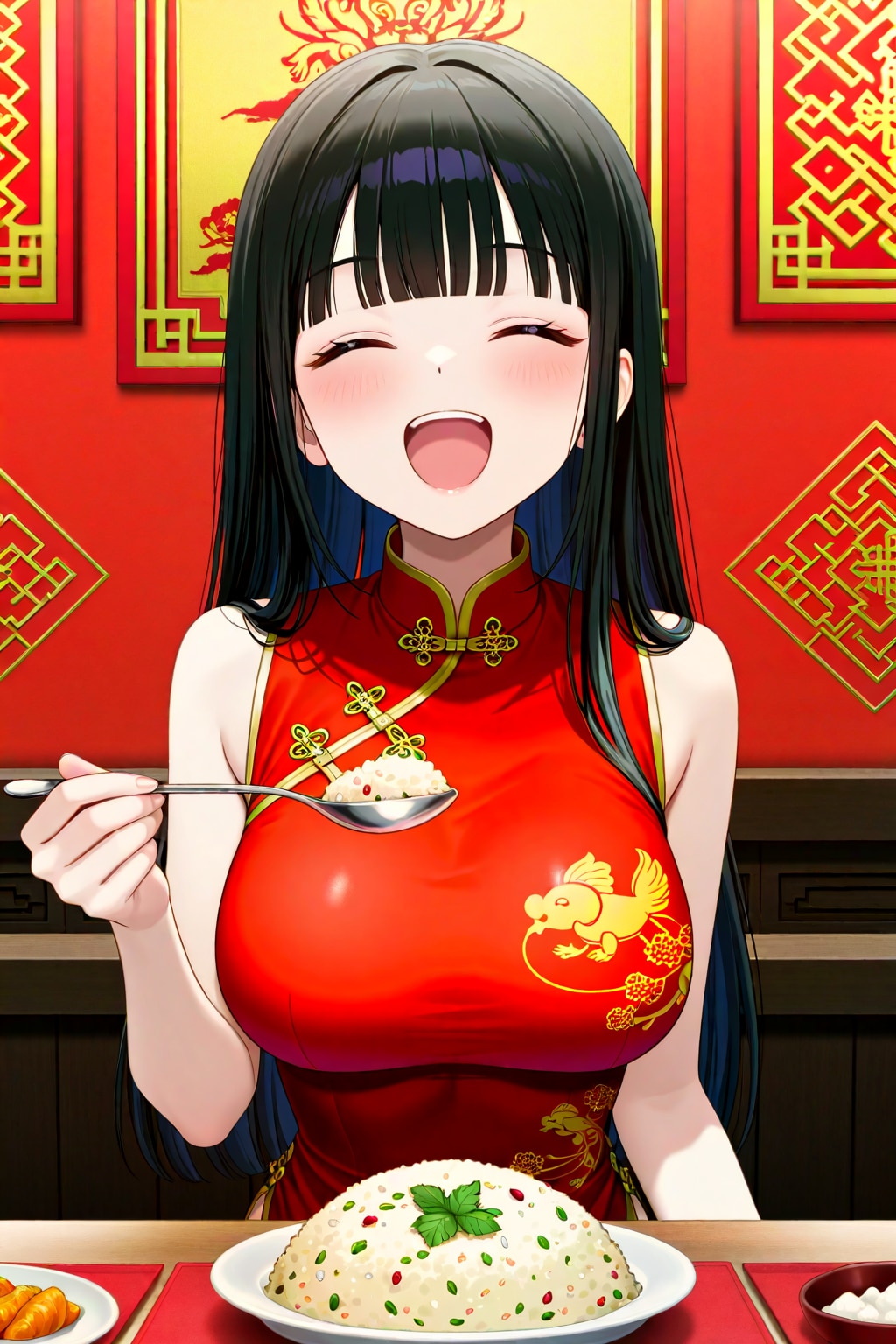 サキちゃんの実家の中華料理屋さんで賄いのチャーハンを食べるサキちゃん👍