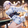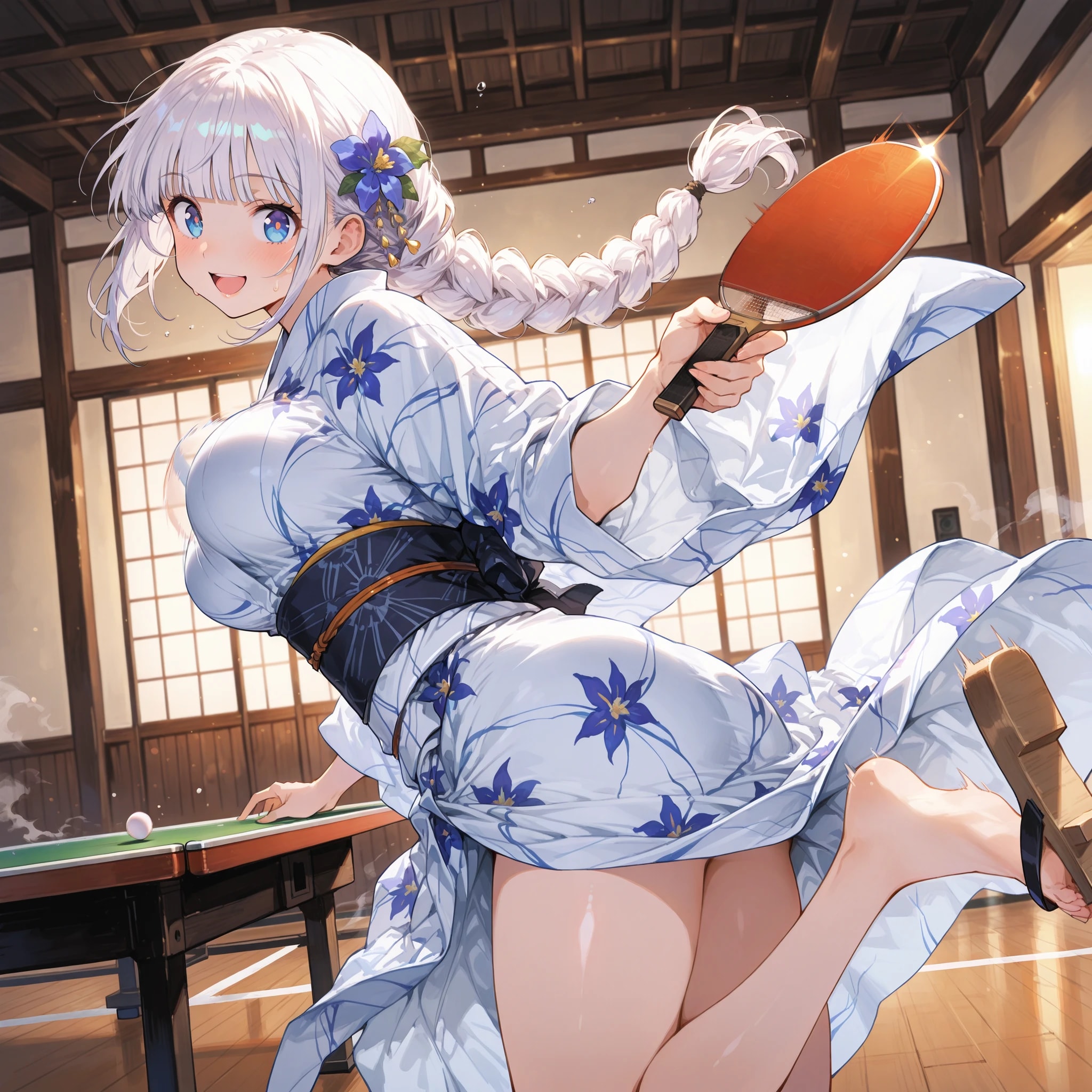 温泉旅館の定番、卓球でハッスルする愛華ちゃんを描きました。