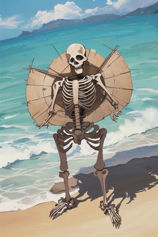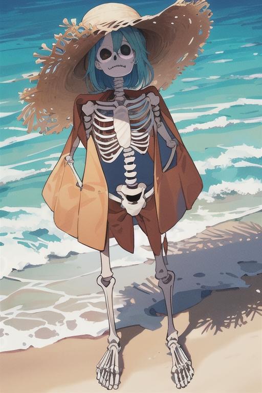 かろうじて骸骨に水着を着させた